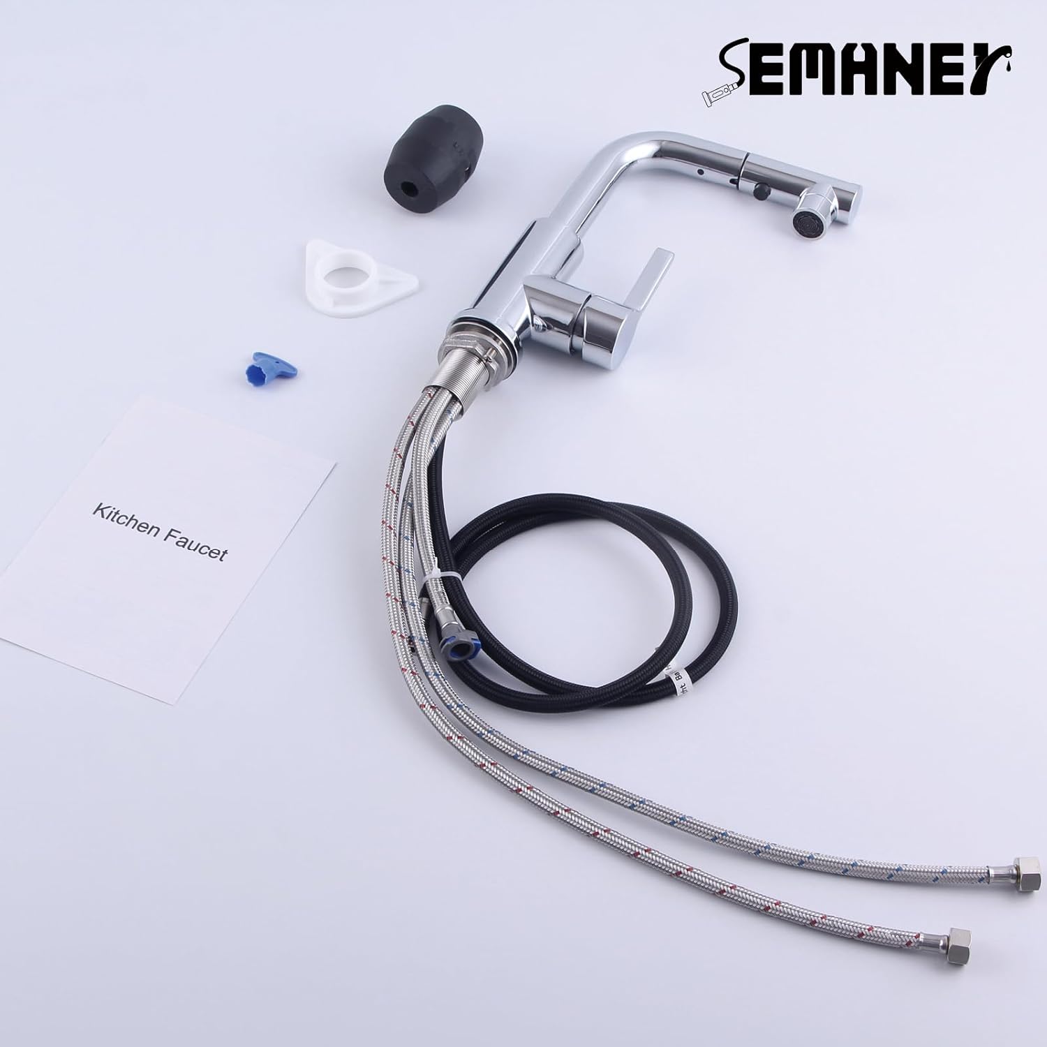 Wasserhahn Küche, SEMANEY Hochdruck Küchenarmatur Ausziehbar, Einhand Spültischarmatur Küche mit Zwe