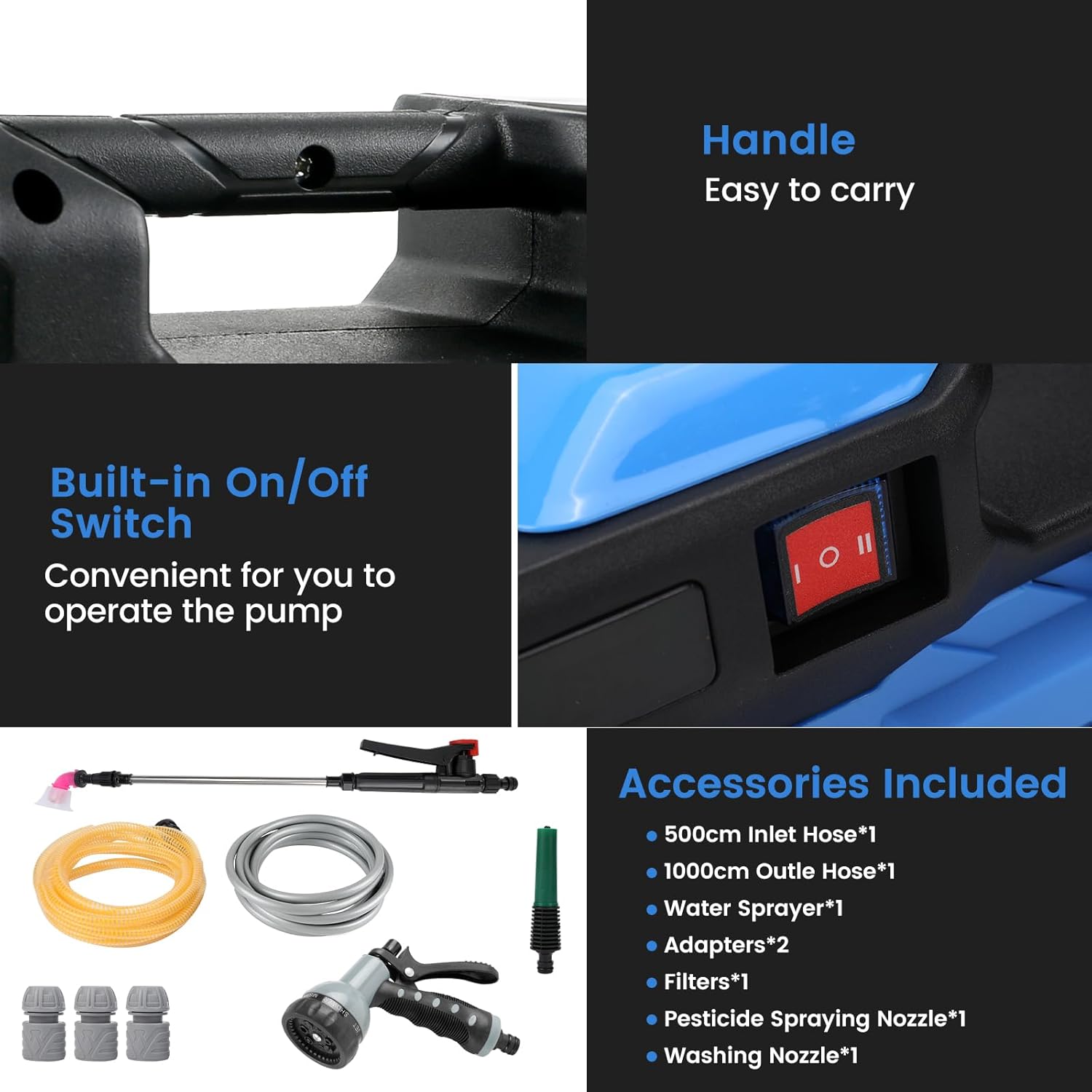 - Package Included & Service - Package Includes 1x Water Pump, 1x Wasserpistole + 2 Schnellanschlüsse + 1 schwarzer Nippelanschluss + 5 m Zulaufschlauch +10 m Ablaufschlauch+2 X Düsen. Aus irgendeinem Grund, Sie sind nicht zufrieden - Bitte fühlen Sie
