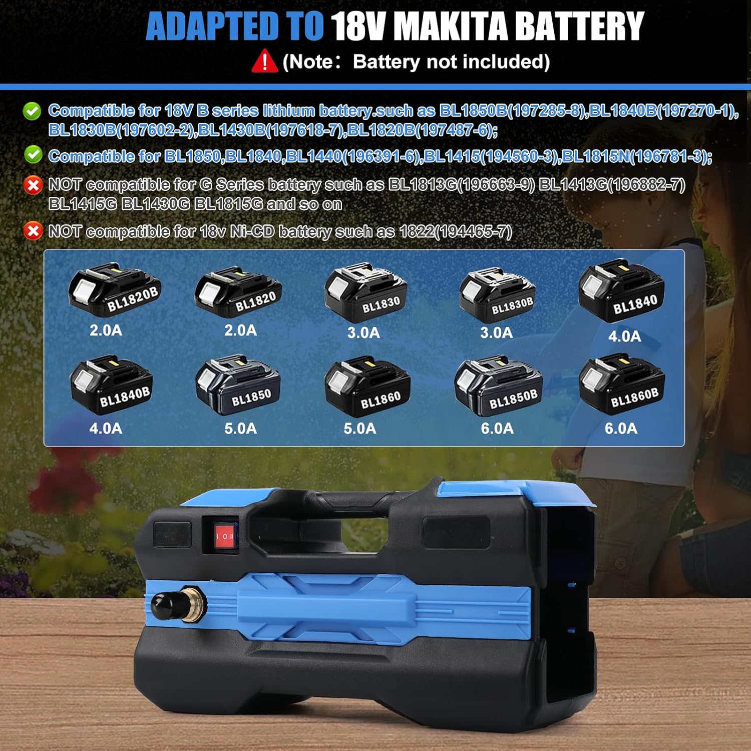 - Passt für Makita Akku 18V - Kabelloses Design Transfer Pump ist nur kompatibel mit Makita 18v Li-Ion Akku (Akku nicht im Lieferumfang enthalten). Diese Pumpe verwendet mit Makita Bl1820 Bl1830 Bl1840 Bl1850 Bl1840b Bl1850b Bl1860b Akku