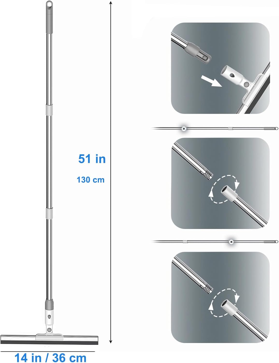 • 【3-teiliger Segmentiert Stiel】Das Wasserschieber paket verfügt über 3-teiligen segmentierten Griff, Sie können das fliesenabzieher dusche frei kombinieren. Mast für eine Gesamtlänge von 132cm.