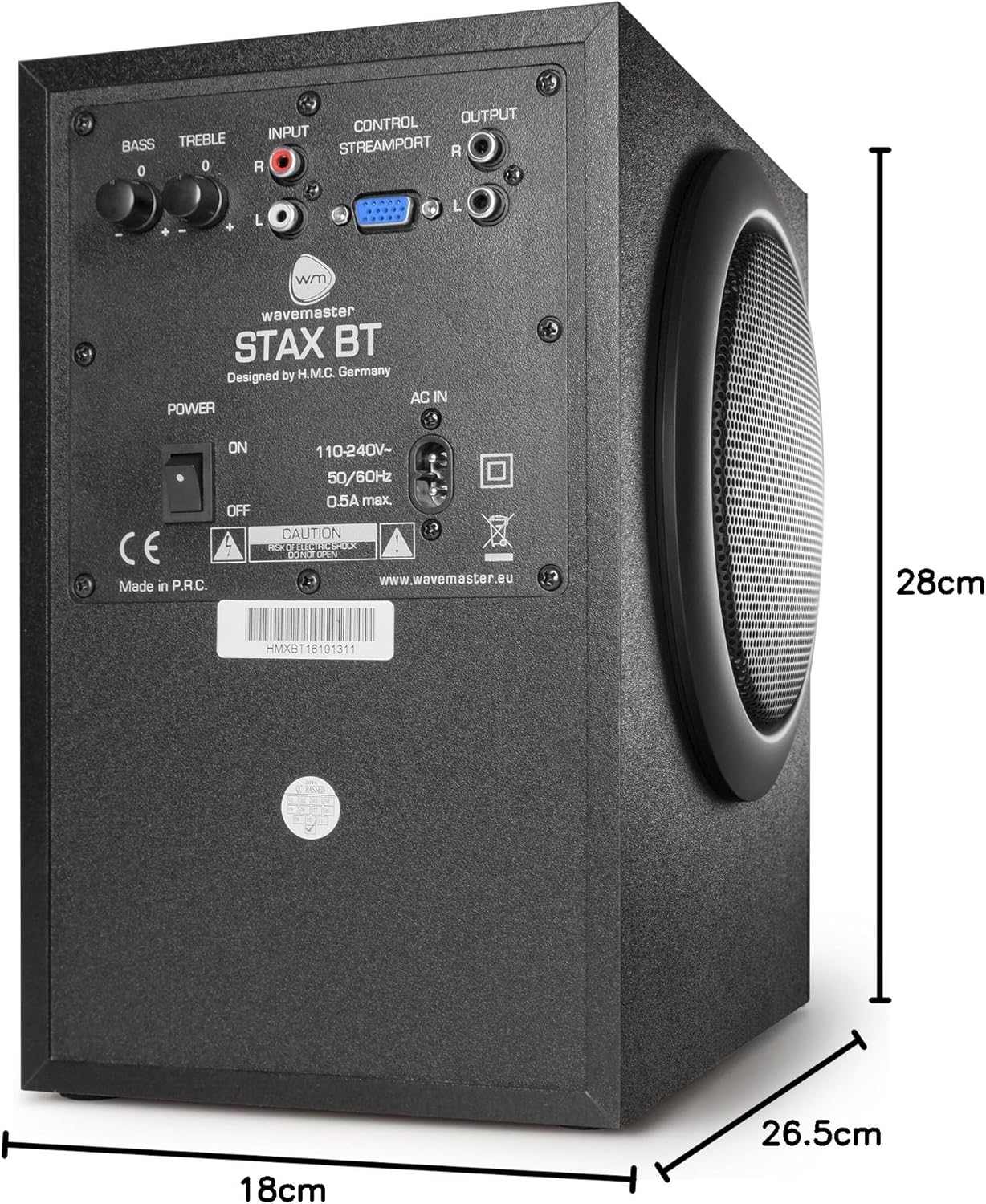 - Bluetooth-Aufrüstung: Gerät ist kompatibel zu wavemaster STREAMPORT Bluetooth Adapter (nicht im Lieferumfang enthalten).