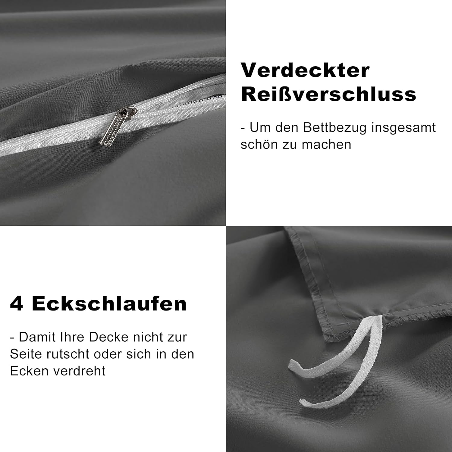 - 🔸Exquisite Reissverschlüsse und Bänder – Der Bettbezug ist mit hochwertigen Reissverschlüssen ausgestattet und lässt sich schnell an- und ausziehen. Ausserdem sind in den vier Ecken praktische Bänder eingenäht, die Ihre Decke an der richtigen