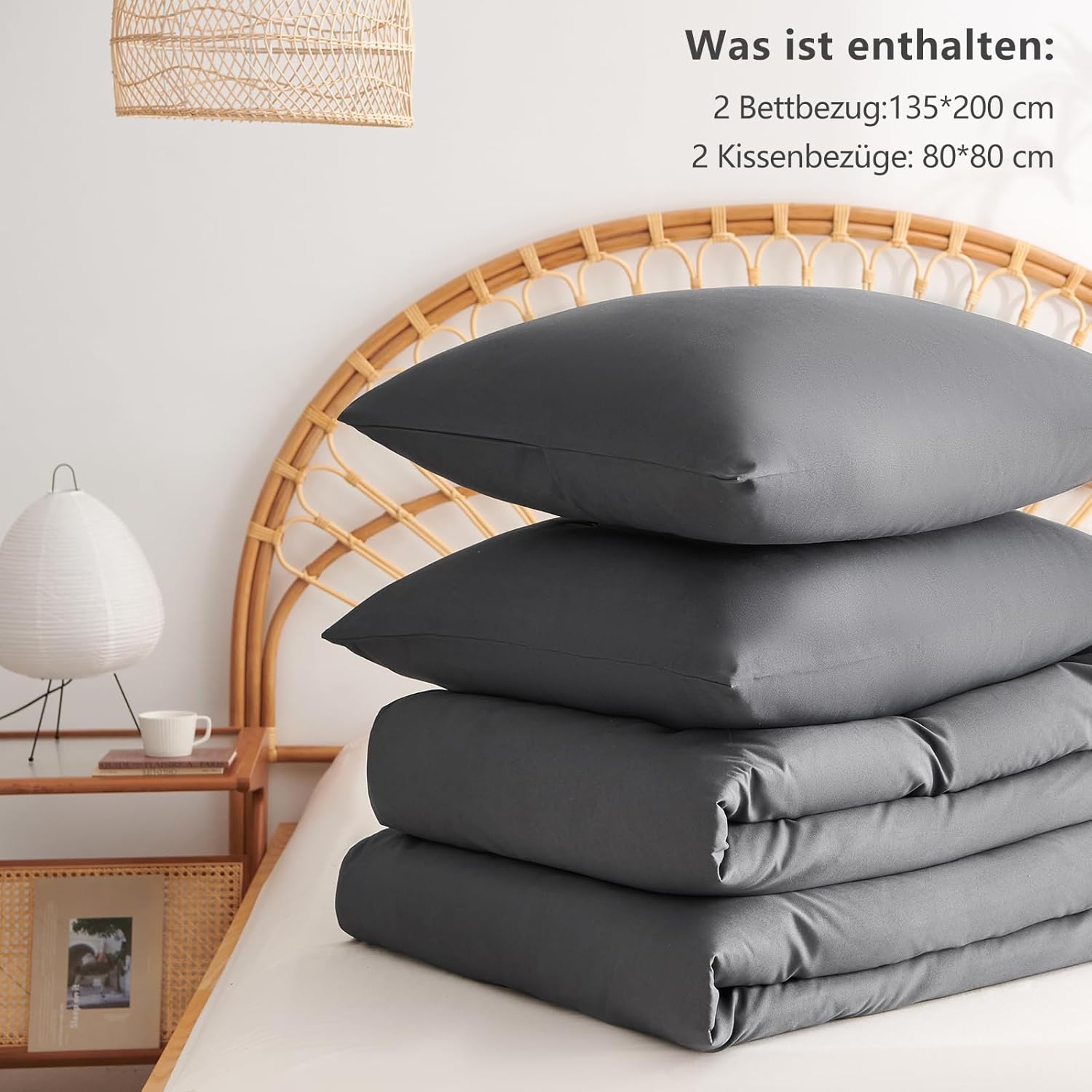 - 🔸Bettwäsche-Set - Die schlichten Unifarben von Bettdecke Bezug 135x200cm 4teilig(inkl: 2 Bettbezüge 135x200 cm + 2 Kissenbezüge 80x80 cm) ist aus Mikrofaser.Mit mit glatter Oberfläche und feiner Haptik bringt Ihnen die Bettwäsche einen