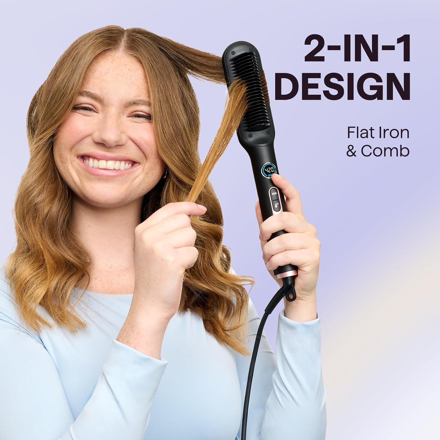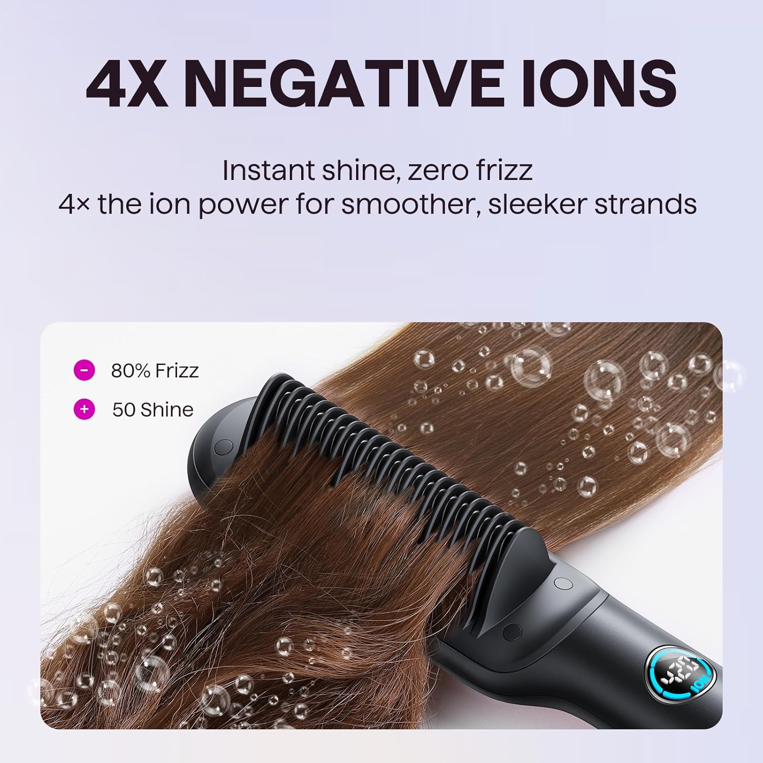 Wavytalk Glättbürste, Ionische Glätteisen und Bürste 2 in 1, Verbrühungsschutz Keramik Haarglätter B