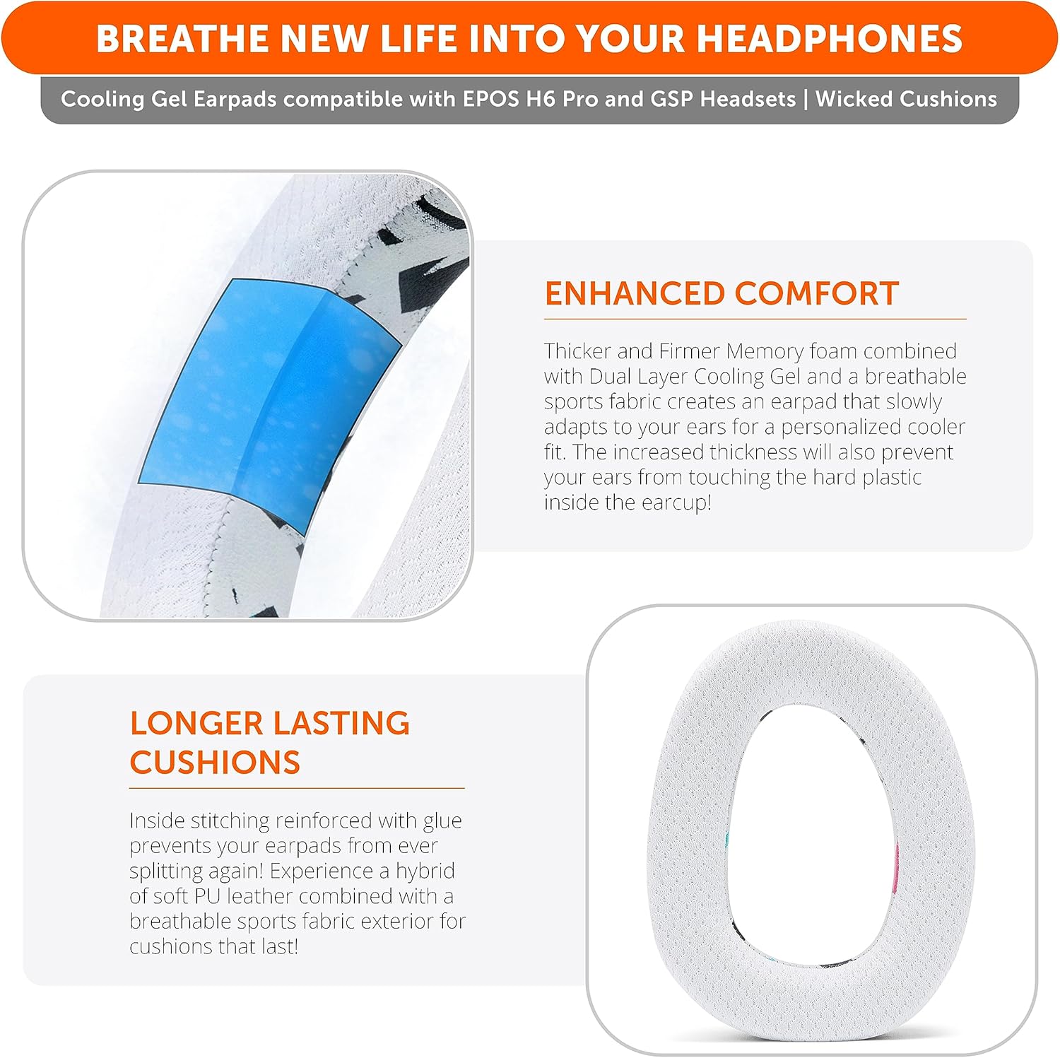 WC Freeze EPOS H6 Pro – Kühlende Gel-Ohrpolster für EPOS H6 Pro/Sennheiser GSP 600 / GSP500 / GSP550