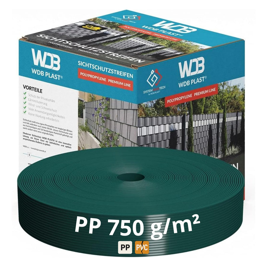 - TECHNISCHE DATEN: Produktinhalt: Sichtschutzstreifen Premium Line – Breite: 4,75 cm, Länge: 50 m, Dicke: 1,2mm. Gewicht: 1 Rolle mit 19cm x 50m Zaunband wiegt 3,9 kg. Material: Polypropylen (PP); Flächengewicht: 750 g/m²; Schutzsystem: DUALTECH –