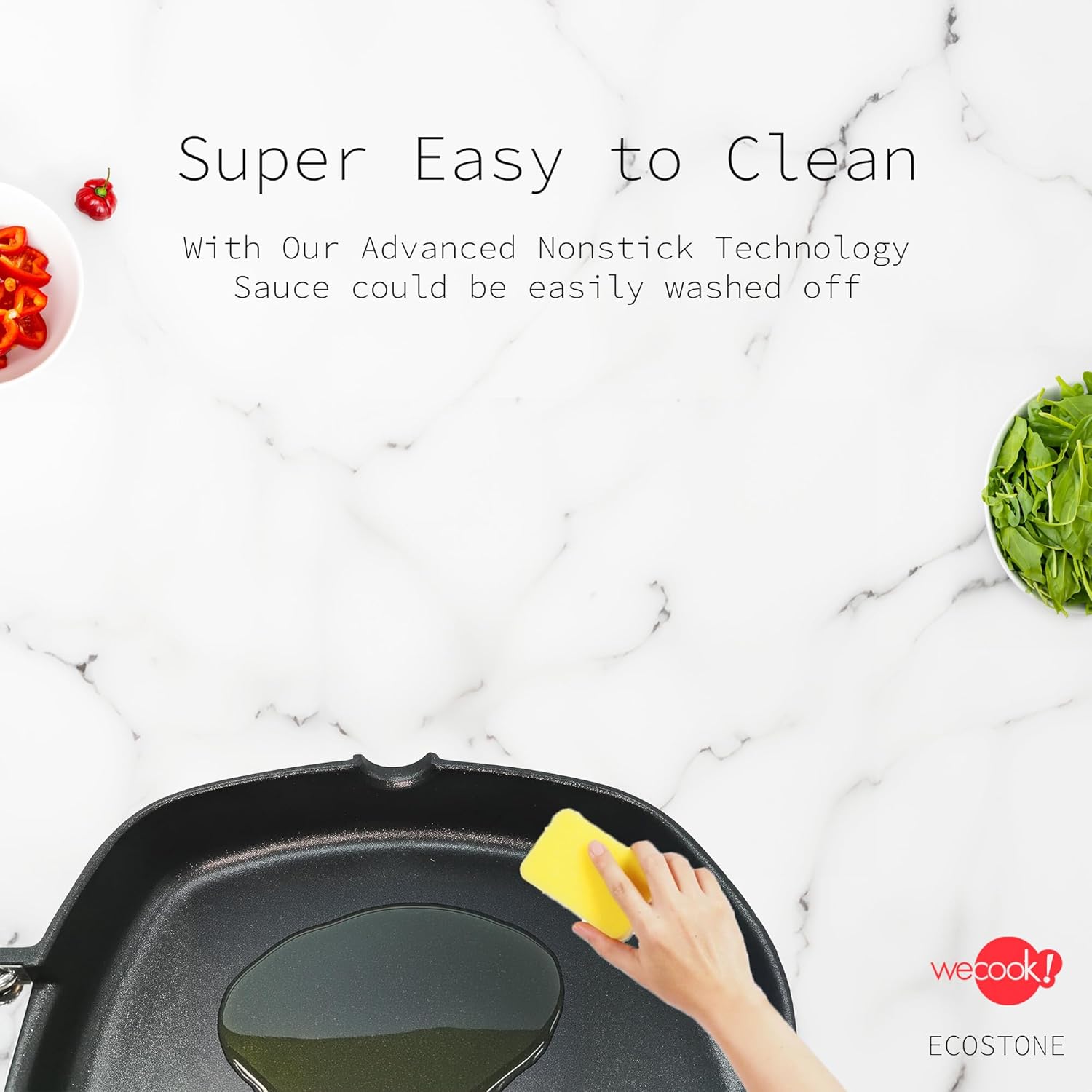 - 【HOCHWERTIGER ALUMINIUMGUSS】 Wecook EcoStone Induktions-Antihaft-Grillpfann mit glattem Boden aus nicht verformbarem Aluminiumguss mit grosser Schönheit und Eleganz, ideal für den täglichen Gebrauch.