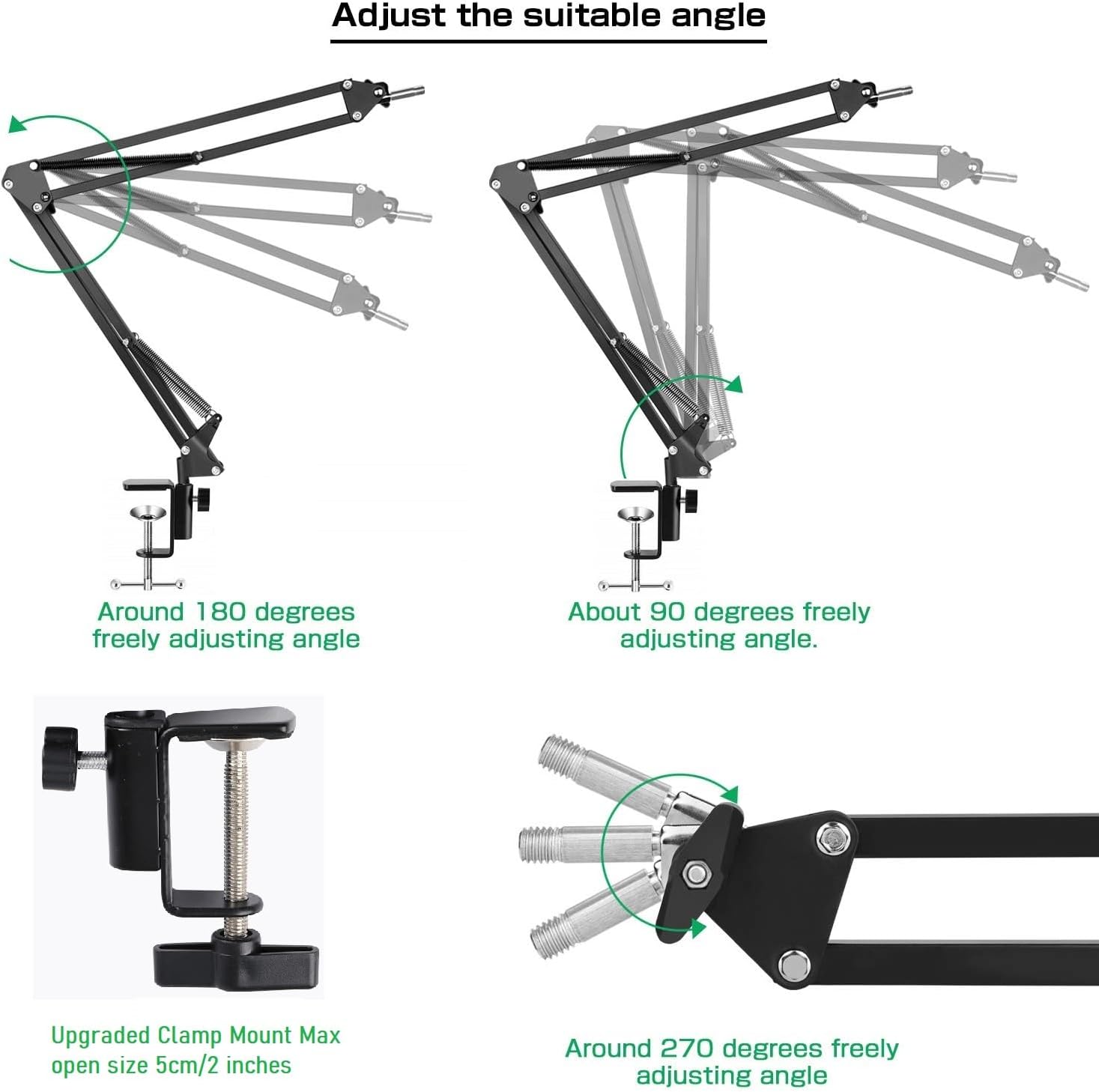 - Webcam-Metallarmhalterung: Höhe kann eingestellt werden, max. 83 cm durch Verriegelungs- und Entriegelungsknopf mit Schraubenschlüssel; kommt mit 1/4-20 Gewinde; hergestellt aus hochwertigem Eisenmetall