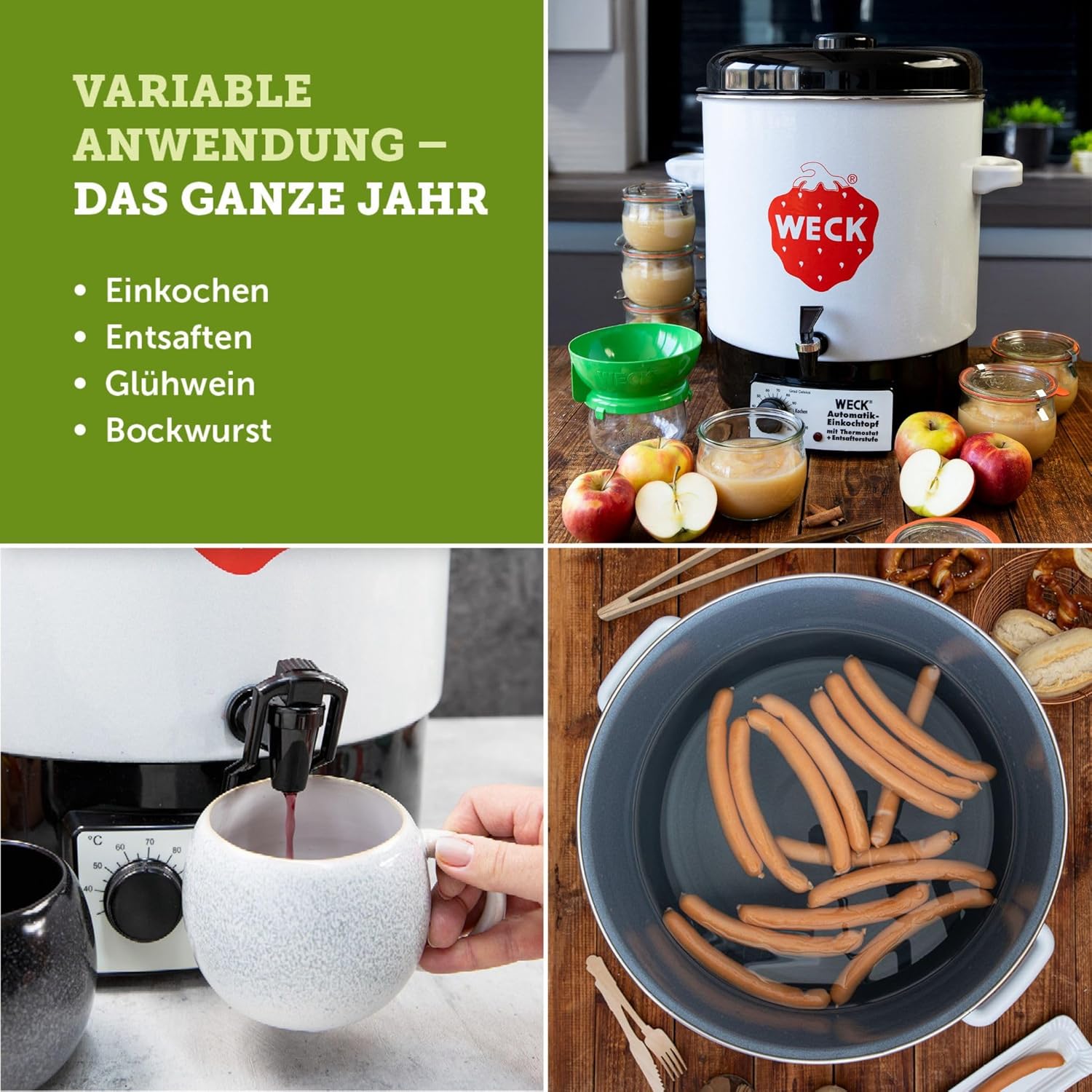 - Der Einmachtopf besitzt einen Überhitzungsschutz, Entsafterschaltung, Kontrolllampe und Präzisionsthermostat