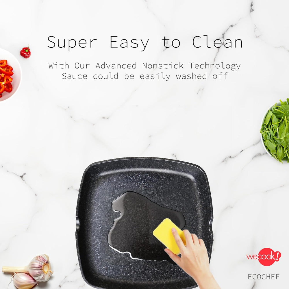 • 【HOCHWERTIGER ALUMINIUMGUSS】Wecook Ecochef Induktions grillpfanne mit Antihaftbeschichtung aus nicht verformbarem Aluminiumguss mit hervorragender Verarbeitung und maximaler Widerstandsfähigkeit, verstärkt mit Titan, einem nicht krebserregenden
