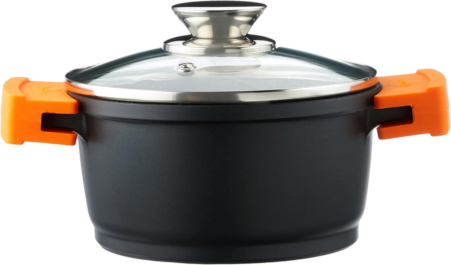 - 【DECKEL AUS GEHÄRTETEM GLAS】 Inklusive Deckel aus gehärtetem Glas mit Dampfauslassventil und Edelstahlknopf. Mit abnehmbaren, thermoisolierenden Silikongriffen. Leicht zu pflegen, spülmaschinenfest.