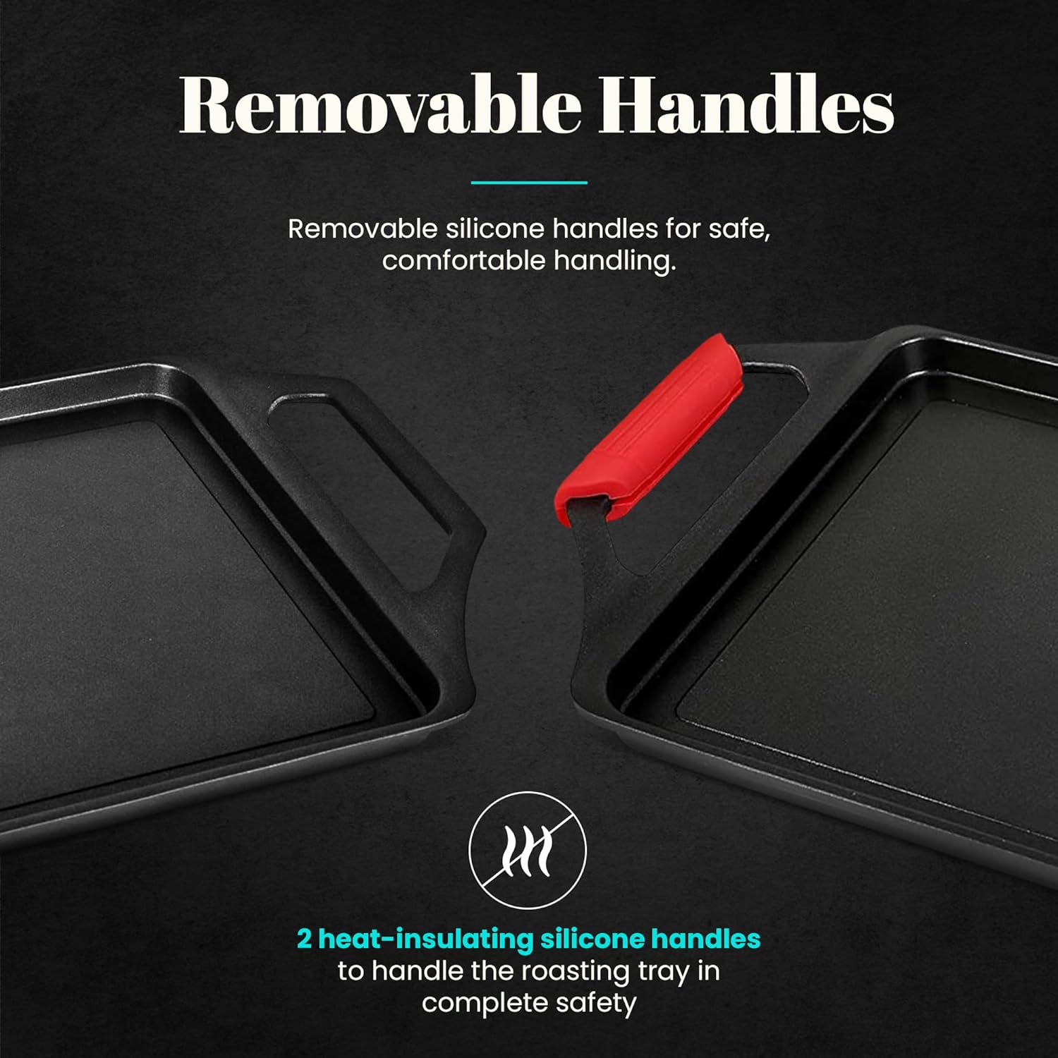 - 【ABNEHMBARE SILIKONGRIFFE】 Inklusive 2 wärmeisolierenden Silikongriffen, damit Sie den Bratentopf sicher und ohne Angst vor Verbrennungen handhaben können. Verfügbare Grössen: 37×25 cm / 43×25 cm.