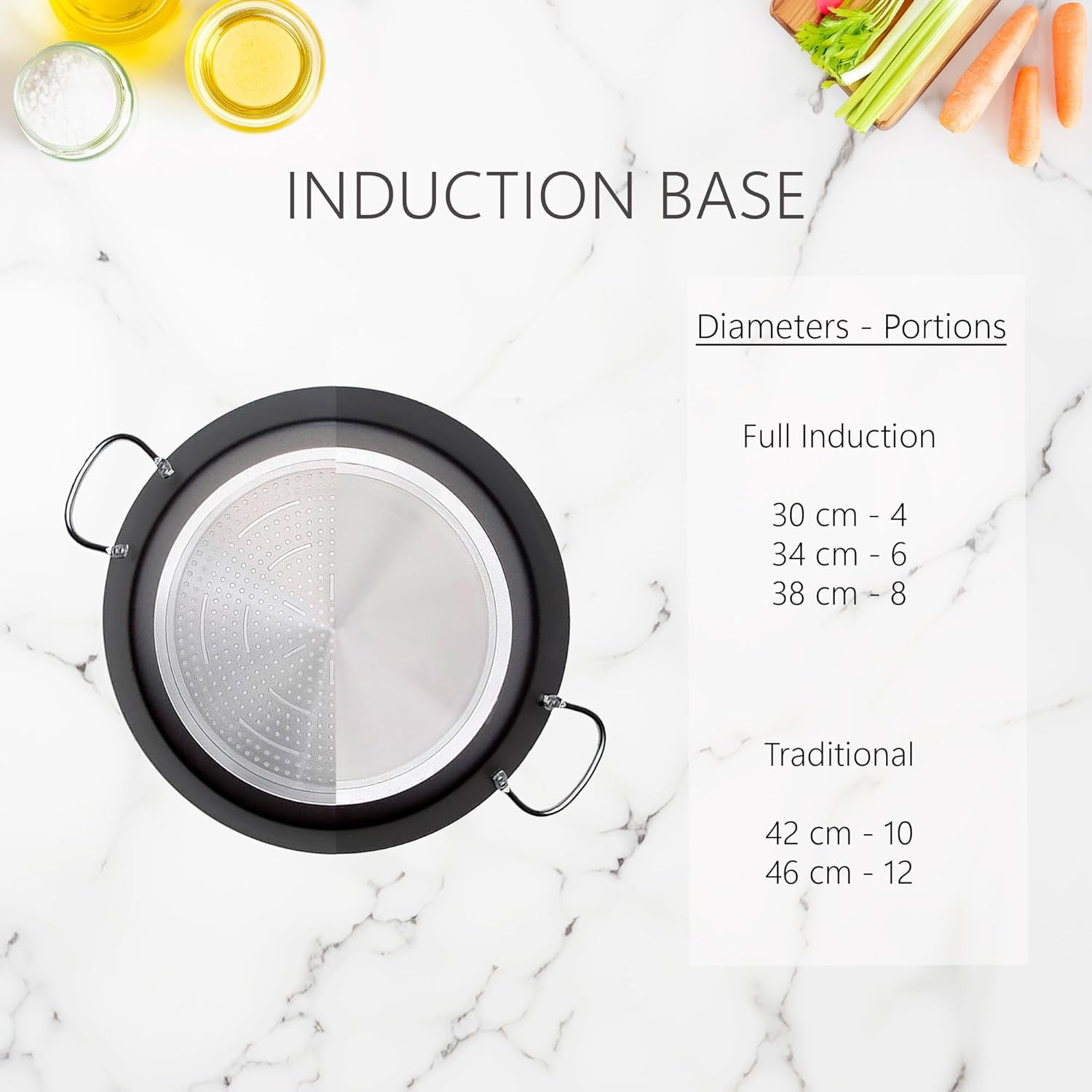 - 【INDUKTION】Die Paellapfanne von Wecook hat eine dicke Oberfläche mit einer Stärke von 3 mm und einen traditionellen Induktionsboden, der eine optimale Wärmeübertragung für perfektes Kochen gewährleistet.