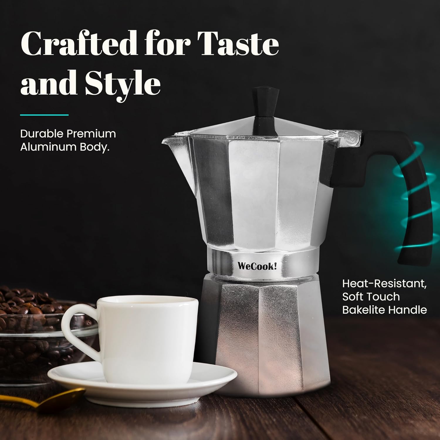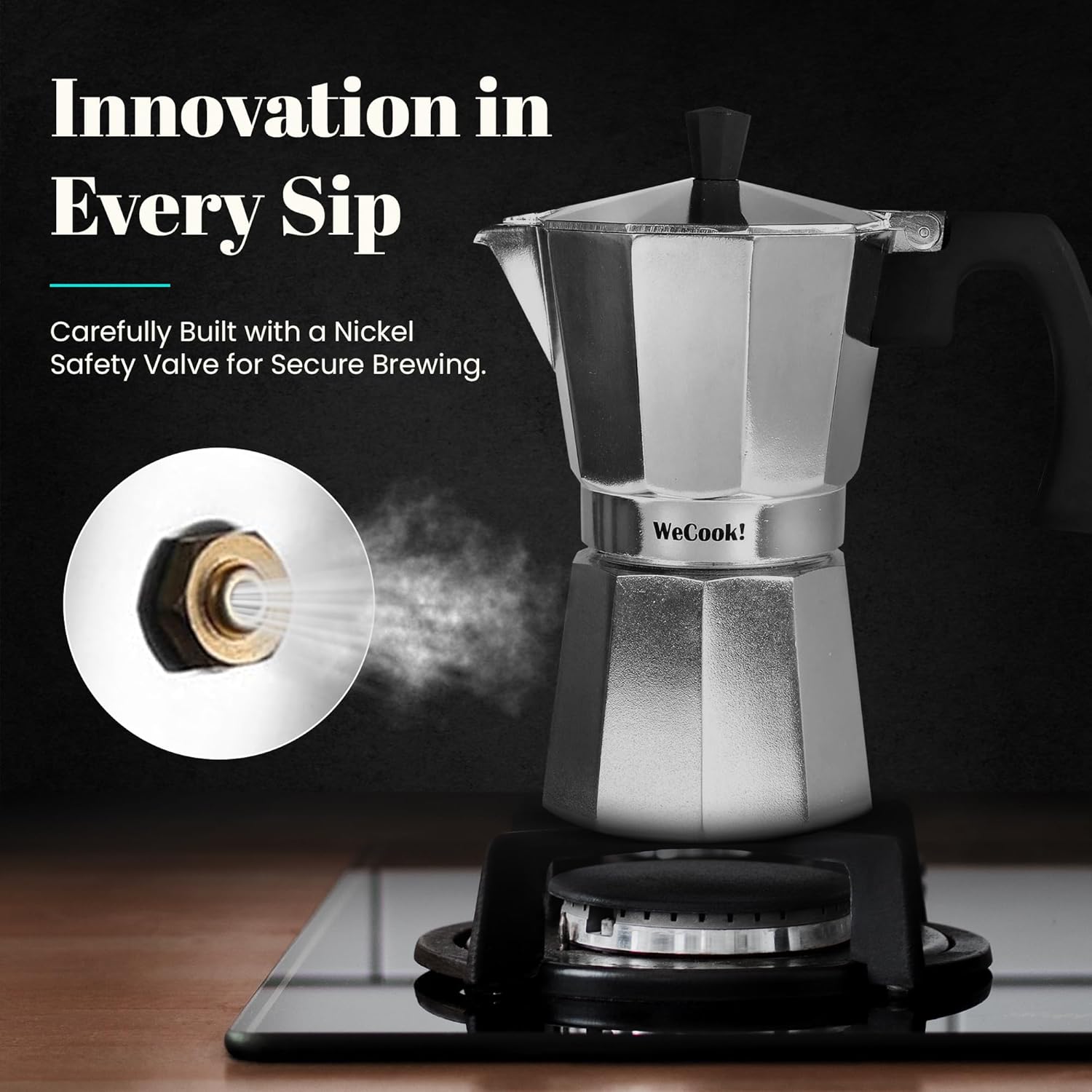 - Ergonomic handle for comfortable use || Safety valve for added protection || Premium double-turned aluminum for long-lasting durability || Compatible with all cooking surfaces, except induction || Classic aluminum espresso maker for rich, authentic