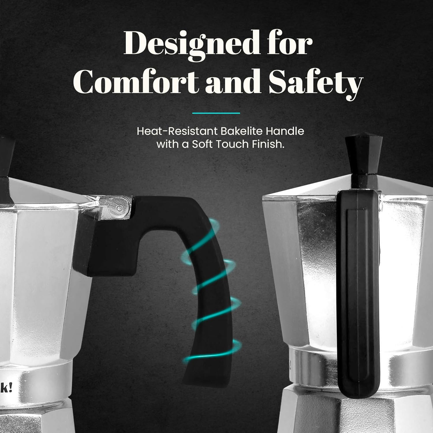- 🖐️ Ergonomie und Komfort: Der hitzebeständige Griff aus Bakelit mit "Soft Touch"-Finish bietet einen bequemen und sicheren Halt und verhindert Verbrennungen, während Sie die perfekte Tasse italienischen Kaffees für einen energiegeladenen Start in