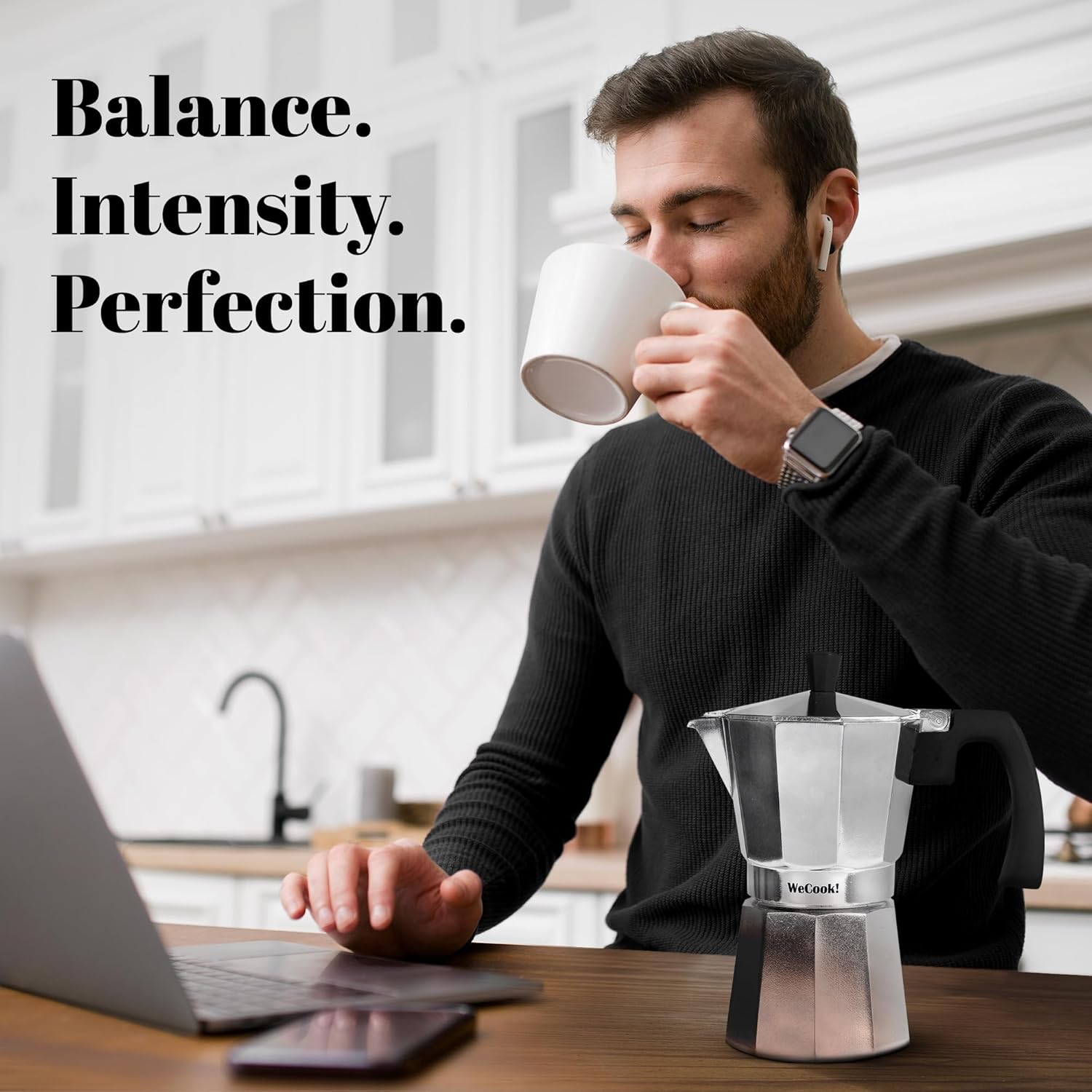 - ☕ Authentisches Kaffeeerlebnis: Geniessen Sie die wahre Essenz des italienischen Kaffees mit der WECOOK! Espressokocher für 9 Tassen. Ideal für Liebhaber von gemahlenem Kaffee, die einen intensiven Geschmack und ein umhüllendes Aroma in jedem
