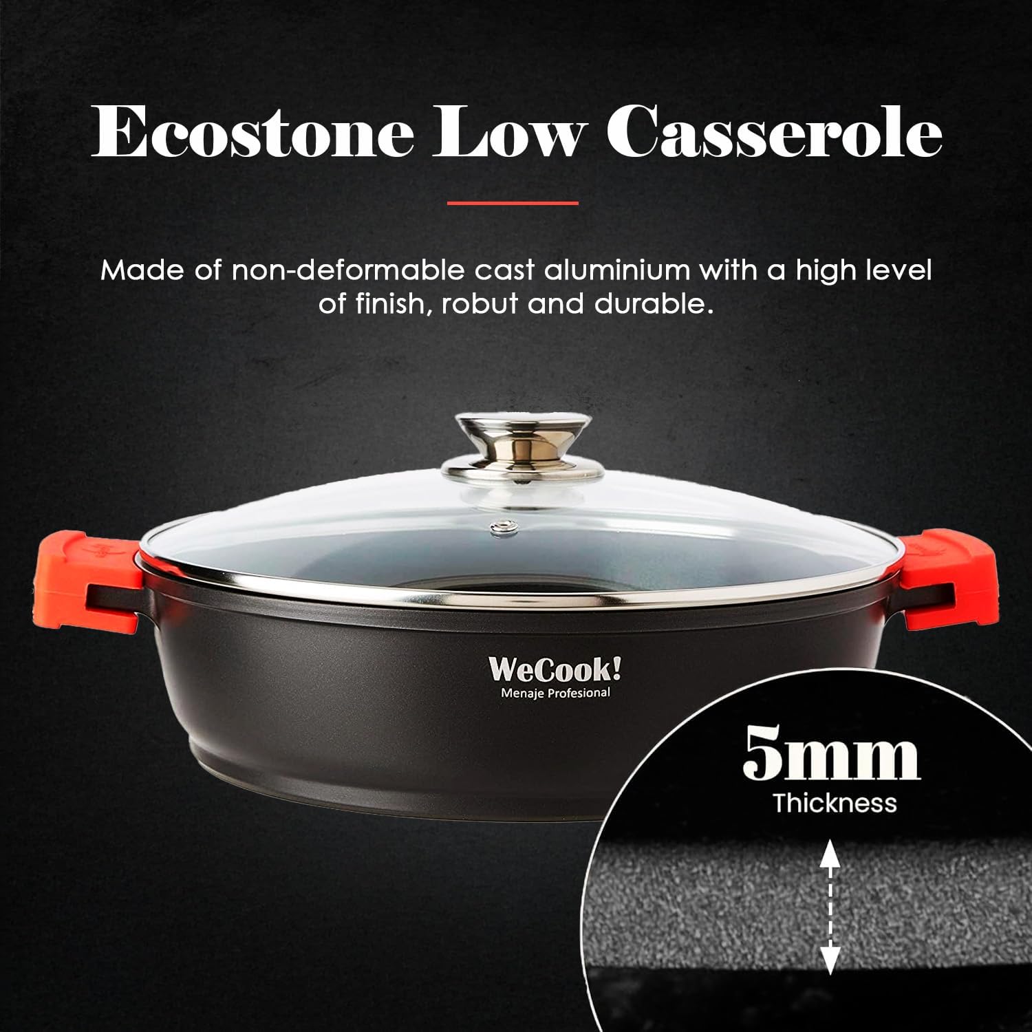 - 【HOCHWERTIGER ALUMINIUMGUSS】 Wecook EcoStone Induktionskasserolle niedrige mit Antihaftbeschichtung aus nicht verformbarem Aluminiumguss mit grosser Schönheit und Eleganz, ideal für den täglichen Gebrauch.