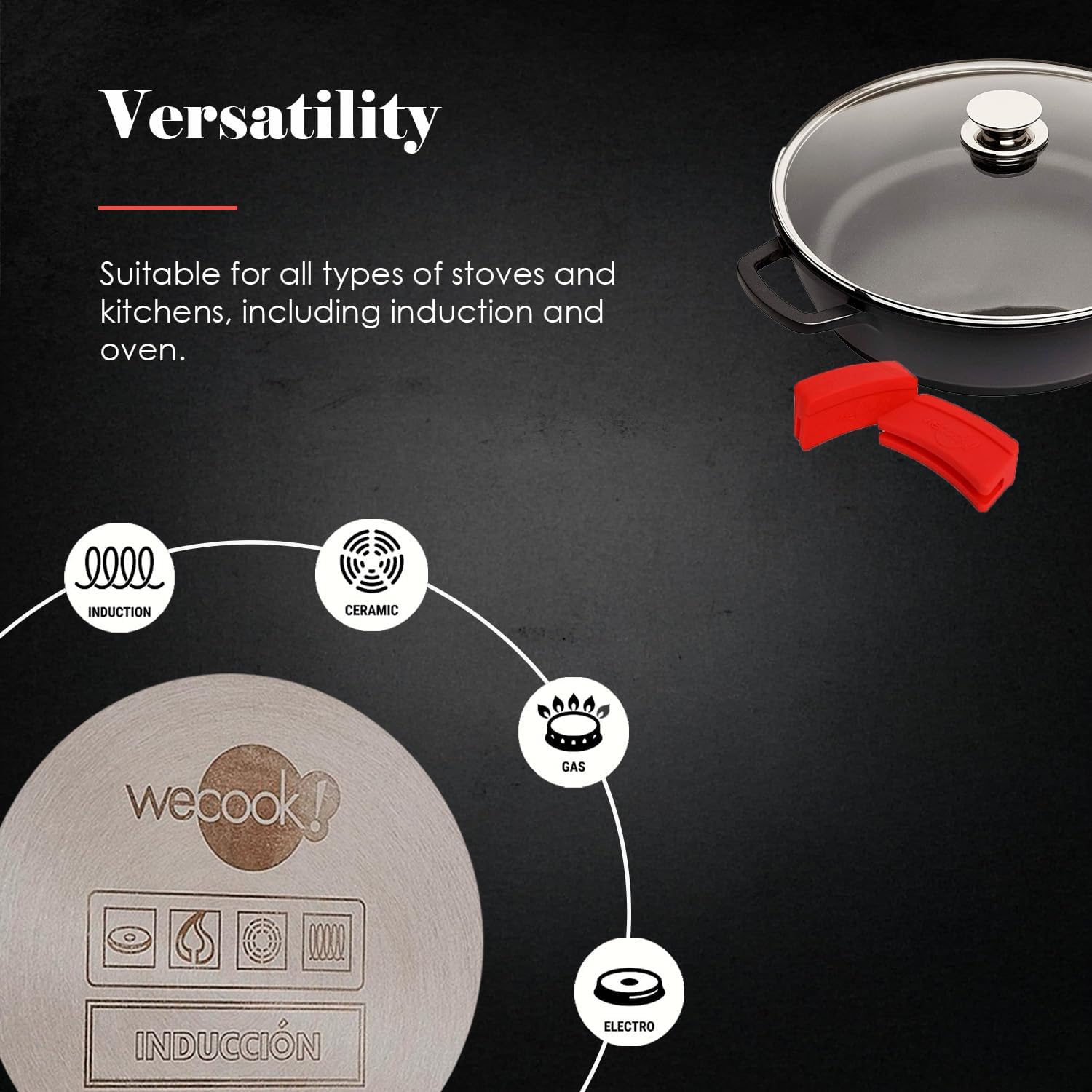 - 【GEEIGNET FÜR ALLE HERDARTEN】 Kann auf allen Herdarten verwendet werden, Glaskeramik, Gas, Elektro, Backofen und Induktion. Erhältlich in den folgenden Grössen: Ø 24 - Ø 28 - Ø 30 - Ø 32 - Ø 36 - Ø 40 cm.