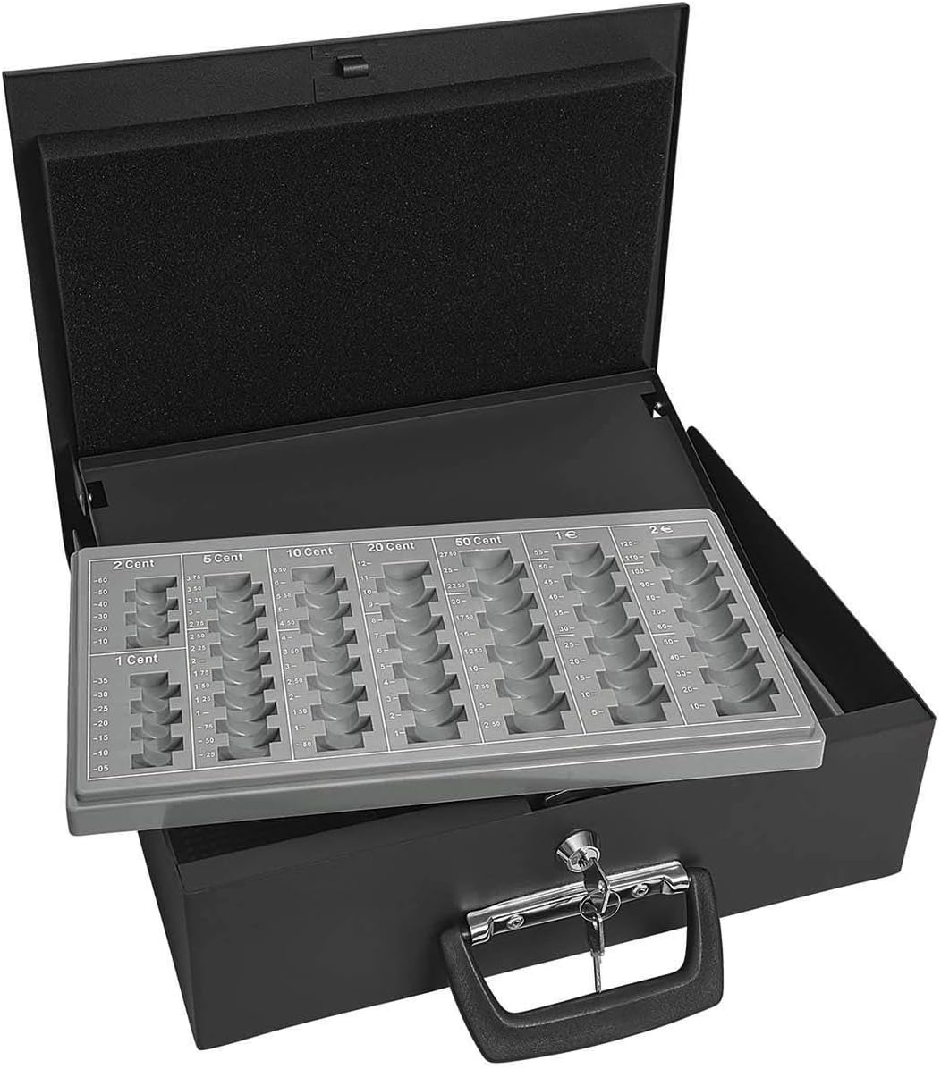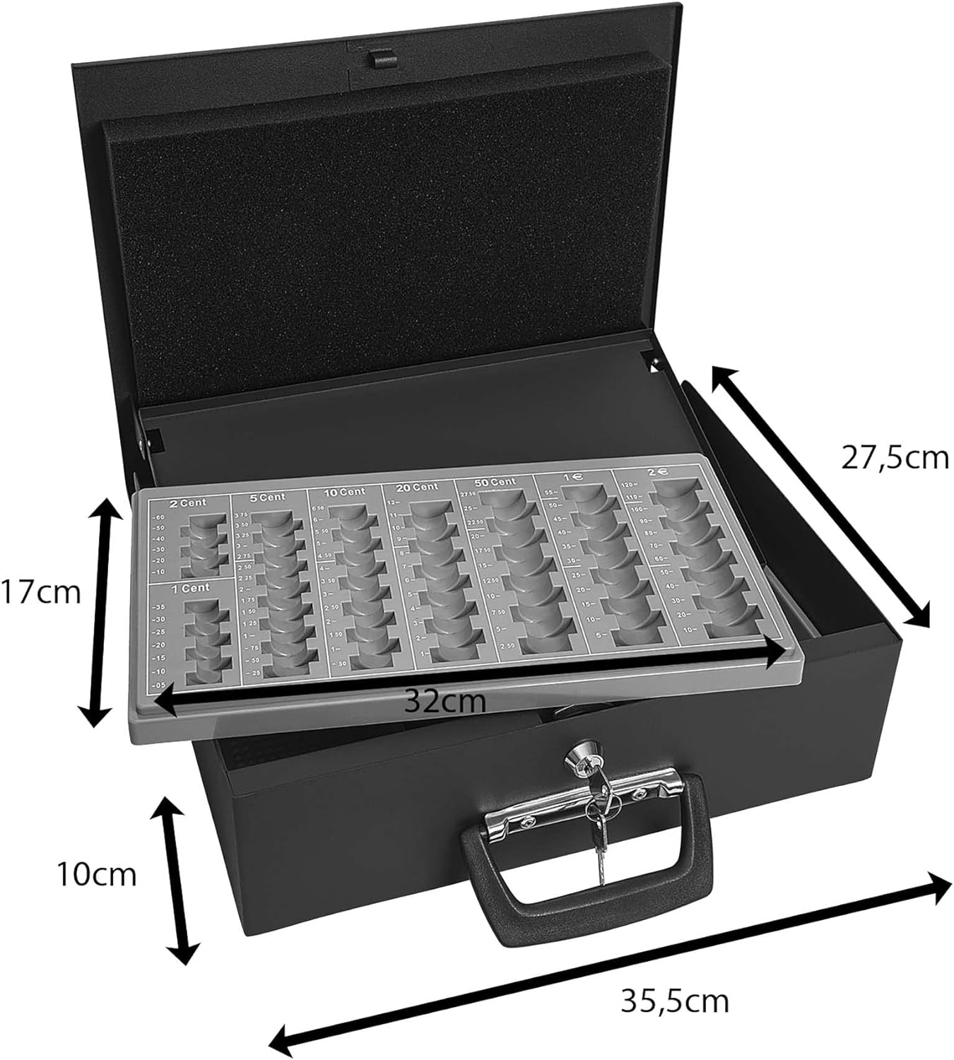 - Grösse: 35, 5 x 27, 5 x 10 cm, Farbe: Kassette und Münzeinsatz Schwarz