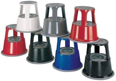 - Steckbar: keine Schrauben oder Werkzeuge erforderlich. Trittstufen mit rutschfesten Gummibelag. Bei Belastung steht der Rollhocker unverrückbar fest auf einem dicken Gummistandring.