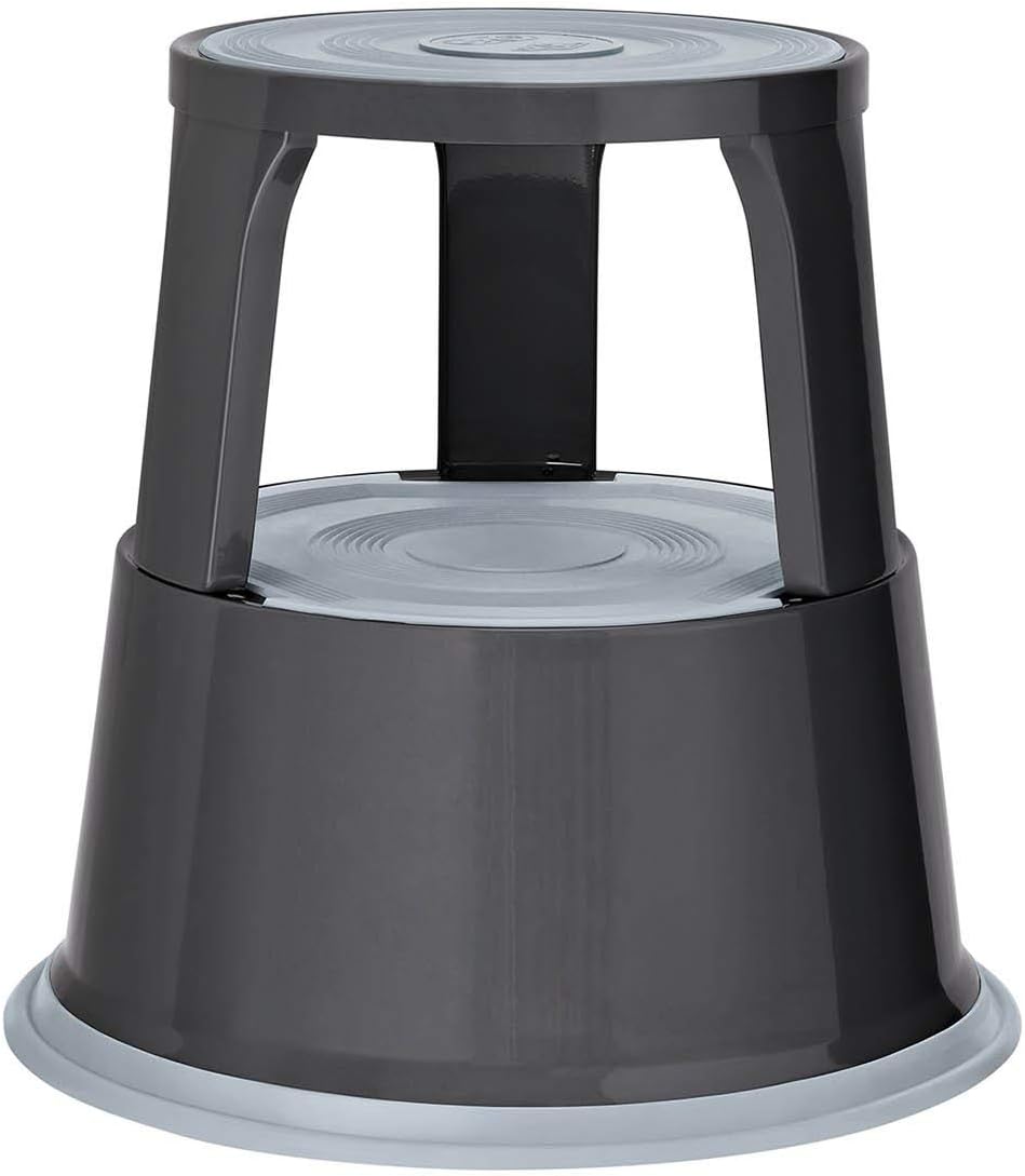 - Steckbar: keine Schrauben oder Werkzeuge erforderlich. Trittstufen mit rutschfesten Gummibelag. Bei Belastung steht der Rollhocker unverrückbar fest auf einem dicken Gummistandring.