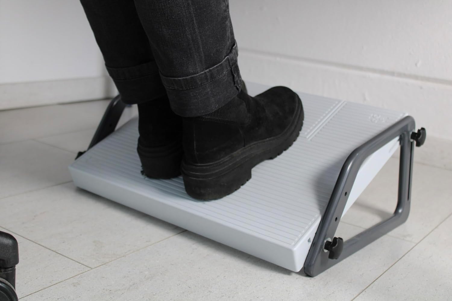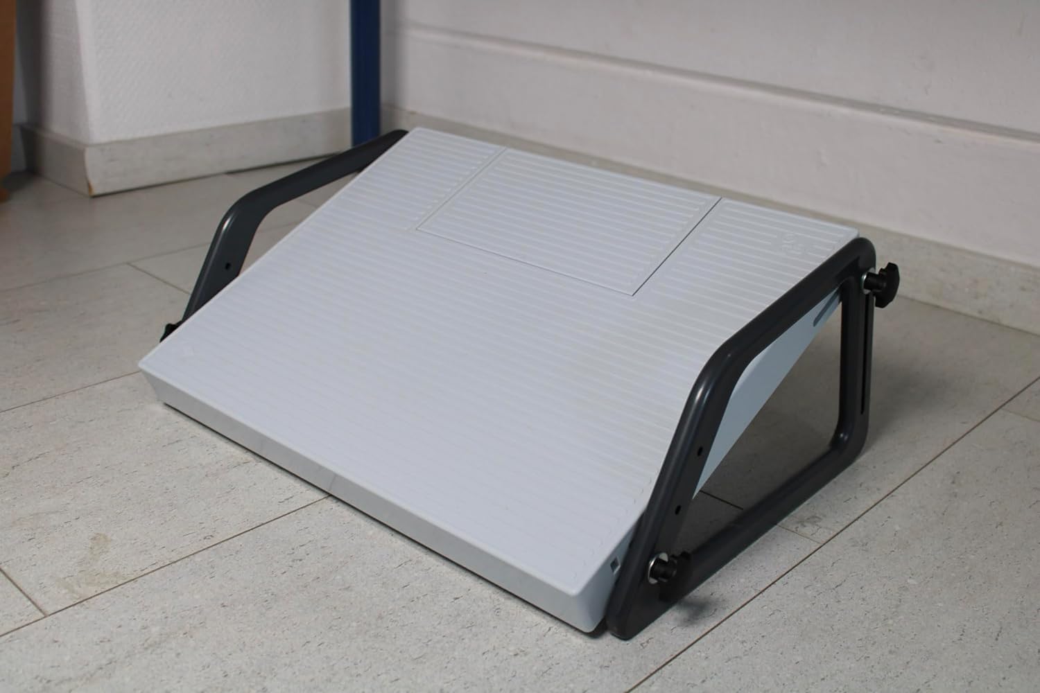 • WEDO Fussstütze RELAX lichtgrau (RAL 7035). Aus bruchsicherem Polystyrol mit stufenloser Höhenverstellung. Ausgestattet mit einer Aussparung (22 x 12 x 2 cm) für den Einsatz eines Fussschalters
