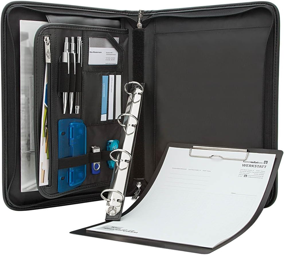 - WEDO Konferenzmappe Elegance für DIN A4-Formate inklusive herausnehmbarer, mit Klettband befestigter 4-Ring-Mechanik (Ø 32 mm, Füllhöhe 21 mm) und herausnehmbarer Schreibunterlage mit Metallklemme