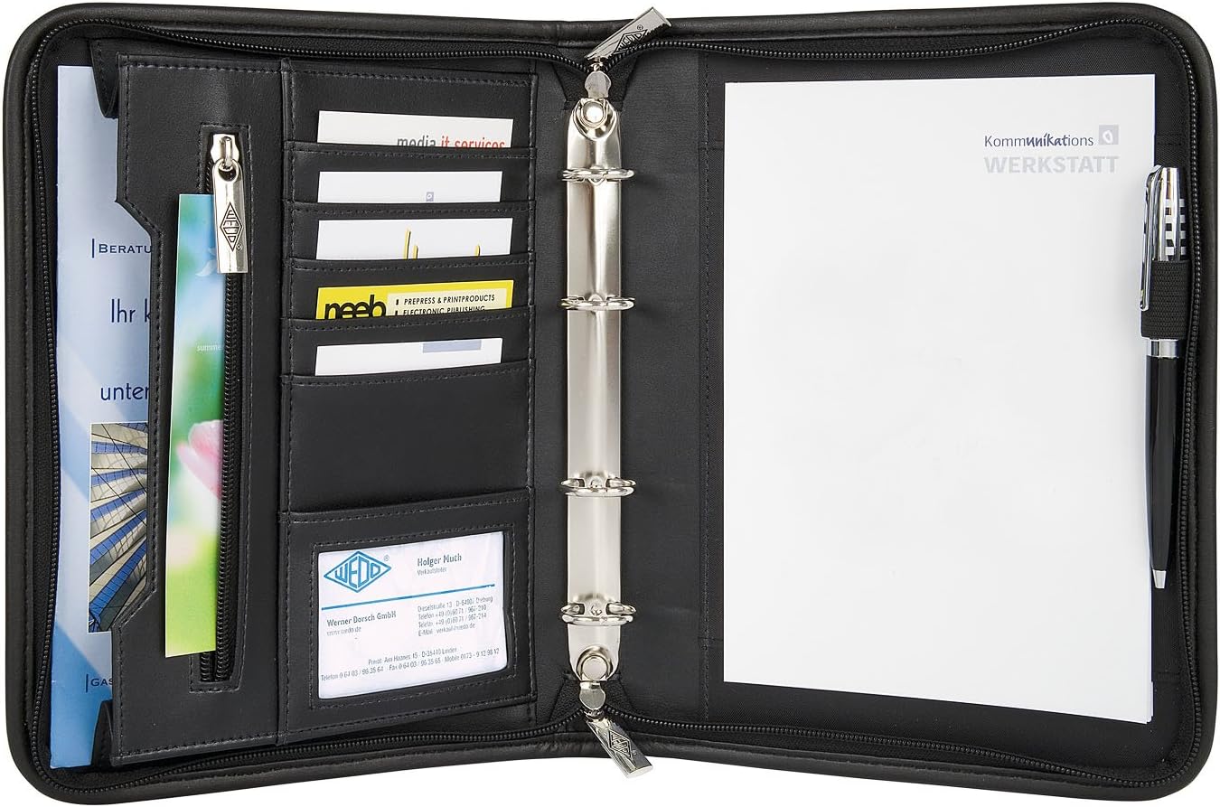 - Produkt 1: Sie verfügt darüber hinaus über fünf Kartenfächer, ein Sichtfenster für Visitenkarten, ein Reissverschlussfach sowie ein A5-Faltfach