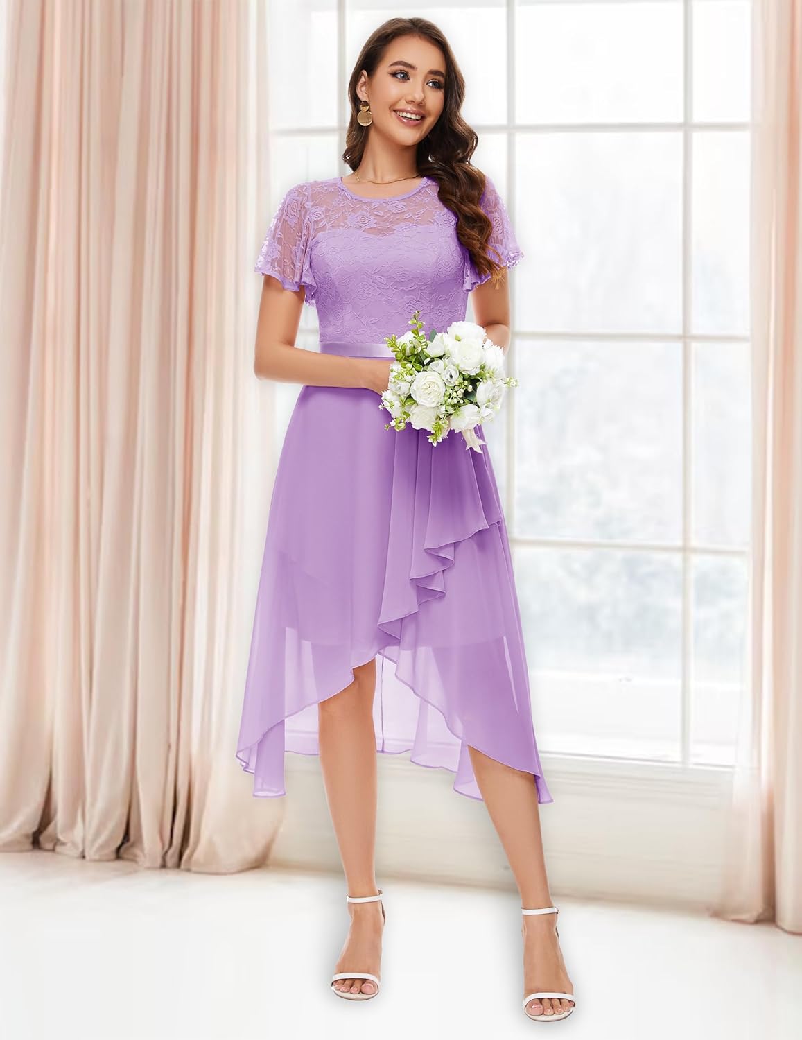 - Weiches Material: Dieser Cocktailkleid Hergestellt aus weichem Spitzenstoff mit leichtem Chiffonstoff, sehr elegant und besser geeignet für Frühling und Sommer Saison.
