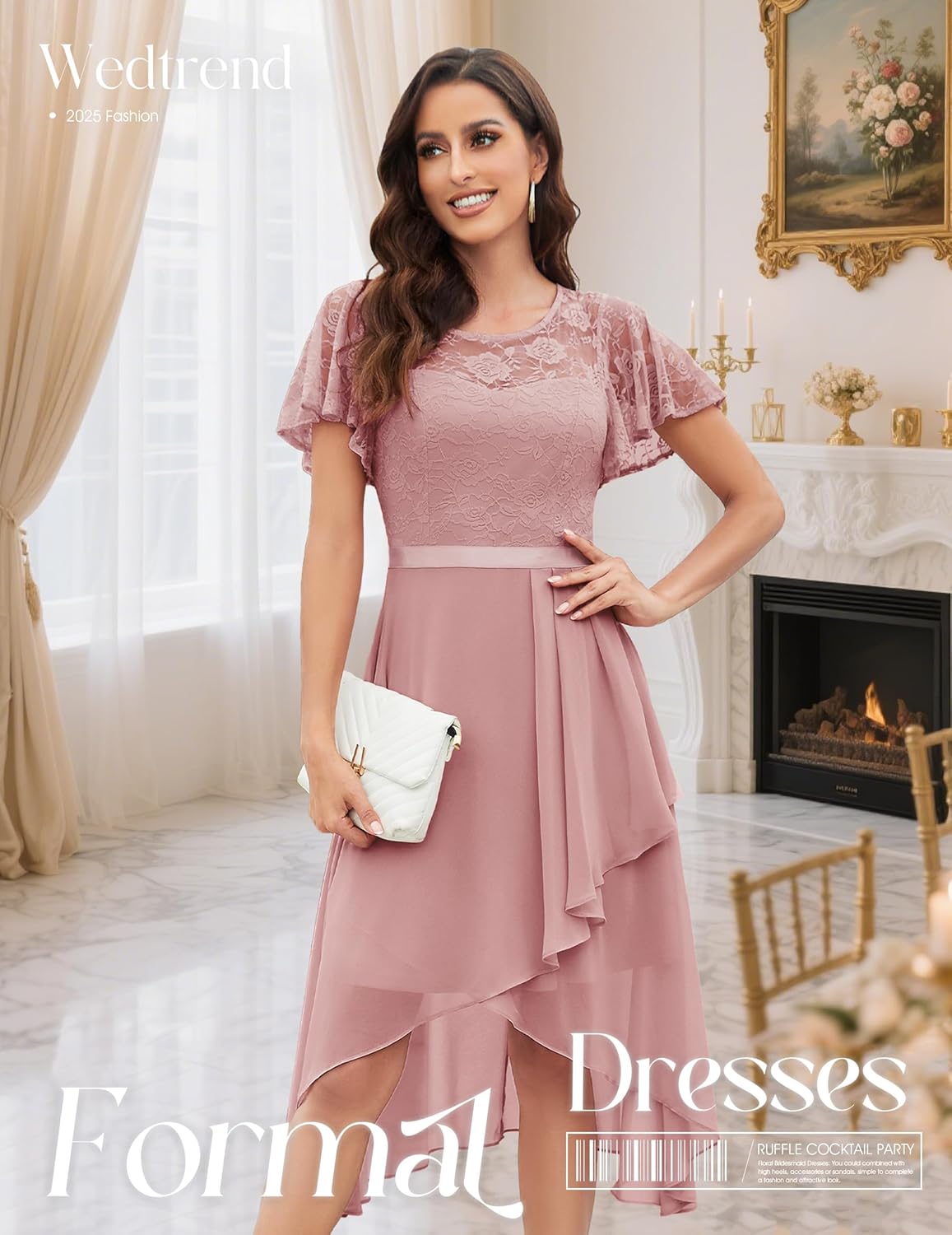• Elegant Cocktailkleid Damen: Hergestellt aus weichem Spitzenstoff mit leichtem Chiffonstoff, sehr elegant und besser geeignet für Frühling und Sommer Saison.