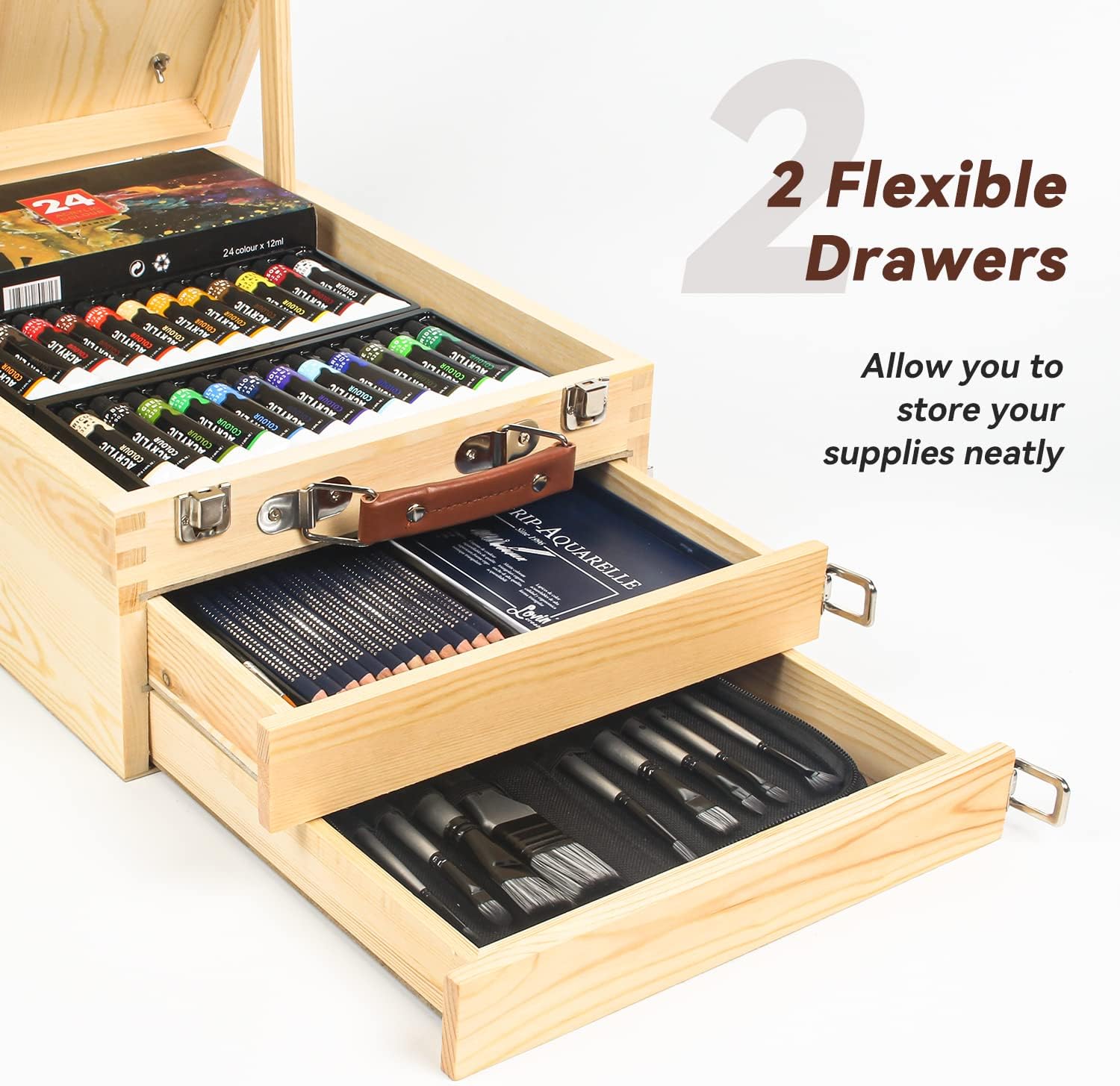 - SORGFÄLTIGE DETAILS - Mit dem Ledergriff lässt sich unsere Tischstaffelei-Box leicht tragen; 4 Verschlussklammern, damit die Schubladen beim Transport nicht verrutschen; Gummipuffer, um unerwünschtes Schaukeln oder Scheuern zu verhindern.