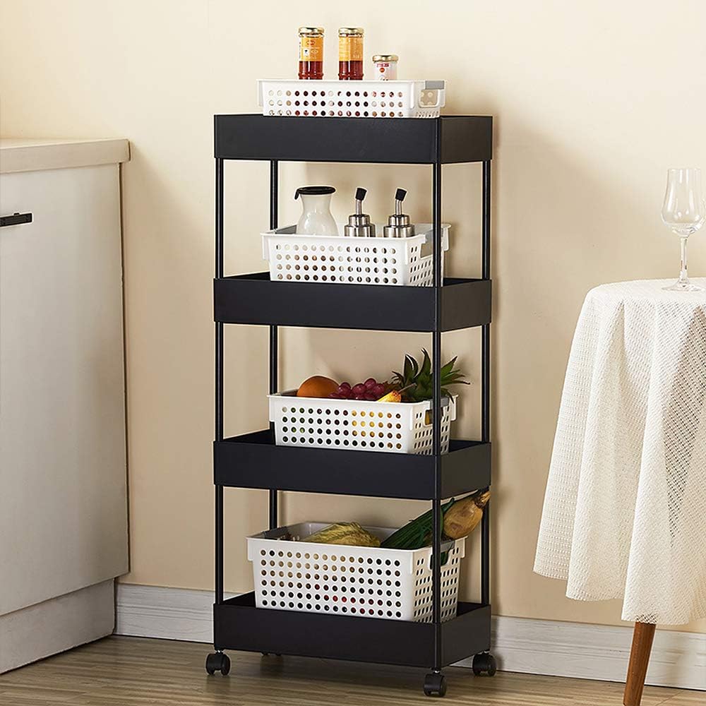 Wefun 4 Schichten Nischenregal Aufbewahrung Badregal Ordnungswagen mit Rollen zum Küche Wohnzimmer S
