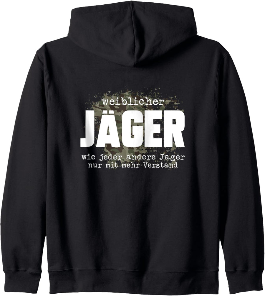 PRODUKTBESCHREIBUNGEN "Weiblicher Jäger - wie jeder andere Jäger nur mit mehr Verstand" vor Tarnmuster für die stolze Jägerin. Egal ob Hobby-, Berufs- oder Sport-Jägerin sie alle zeigen gerne ihren Spass an der Jagd und die Leidenschaft für die Natur. Perfekt als Geburtstagsgeschenk, zum Jubiläum, Vatertag, zu Weihnachten oder einfach nur so für den Jäger Opa oder Grossvater zur Vollendung des Jagd Looks oder als Freizeitkleidung.