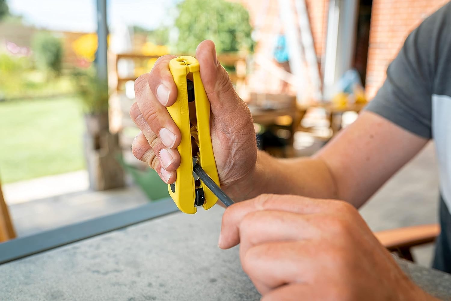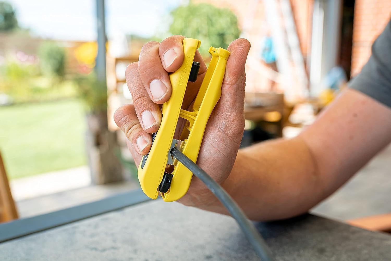 - ERGONOMISCH GEFORMT - Der Kabelisolierer liegt gut in der Hand / ermöglicht ermüdungsfreies Arbeiten / benötigt keine Einstellung der Schnitttiefe / hat einem integrierten Längenanschlag.