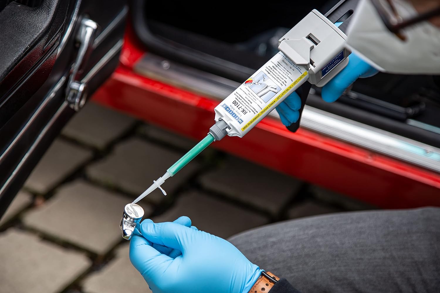 - VERARBEITUNG – Klebflächen säubern und trocknen. Mit Hilfe der Quadro Mischdüse kann der Kleber direkt aus Doppelkartuschen verarbeitet werden. (Dosierpistole & Mischdüse sind nicht im Lieferumfang enthalten.)