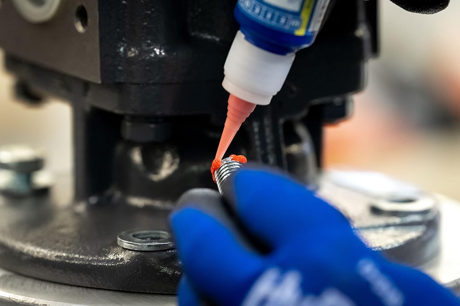 - VERARBEITUNG – WEICONLOCK wird direkt aus dem Pen mit der Dosierspitze gleichmässig aufgetragen; dabei direkten Kontakt Dosierspitze/ Metall vermeiden. Im Anschluss die Teile montieren und festziehen.