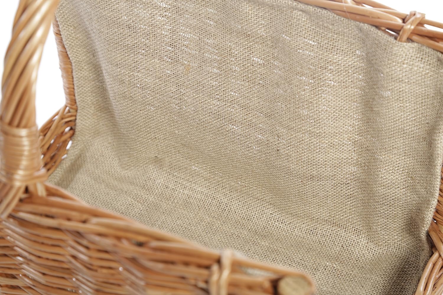 • sehr stabiler, eckiger Korb aus geschälter Weide mit Jute-Einsatz und Tragebügel
