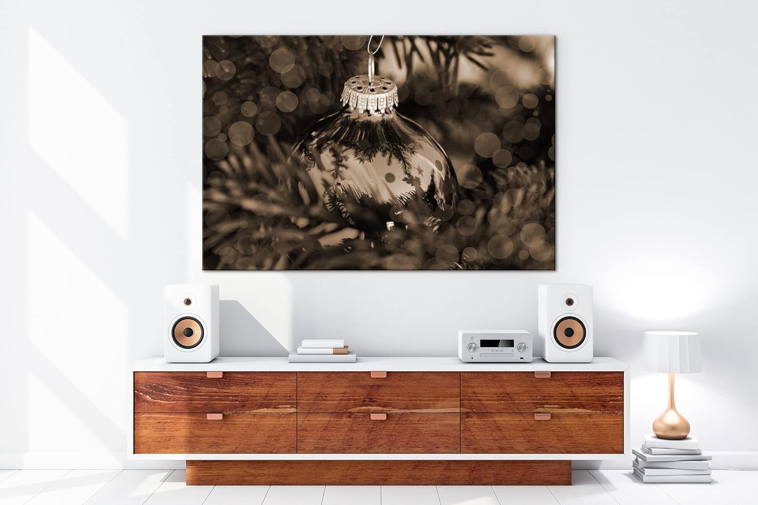deyoli Weihnachtlicher Schmuck Effekt: Sepia Format: 80x60 als Leinwandbild, Motiv fertig gerahmt au