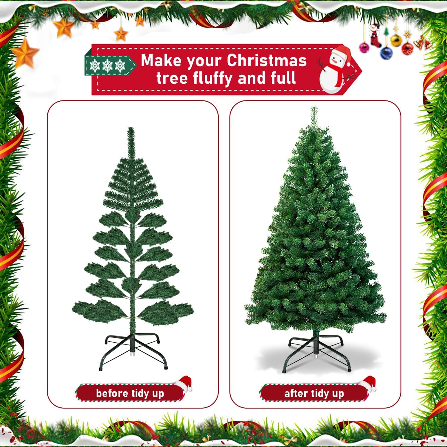 - Einfache Installation und Stabilität: Der Weihnachtsbaum lässt sich schnell und einfach zusammenbauen. Die verdickten und verstärkten Verbindungsstellen sowie der stabile Metallständer sorgen dafür, dass der Baum fest und sicher steht.