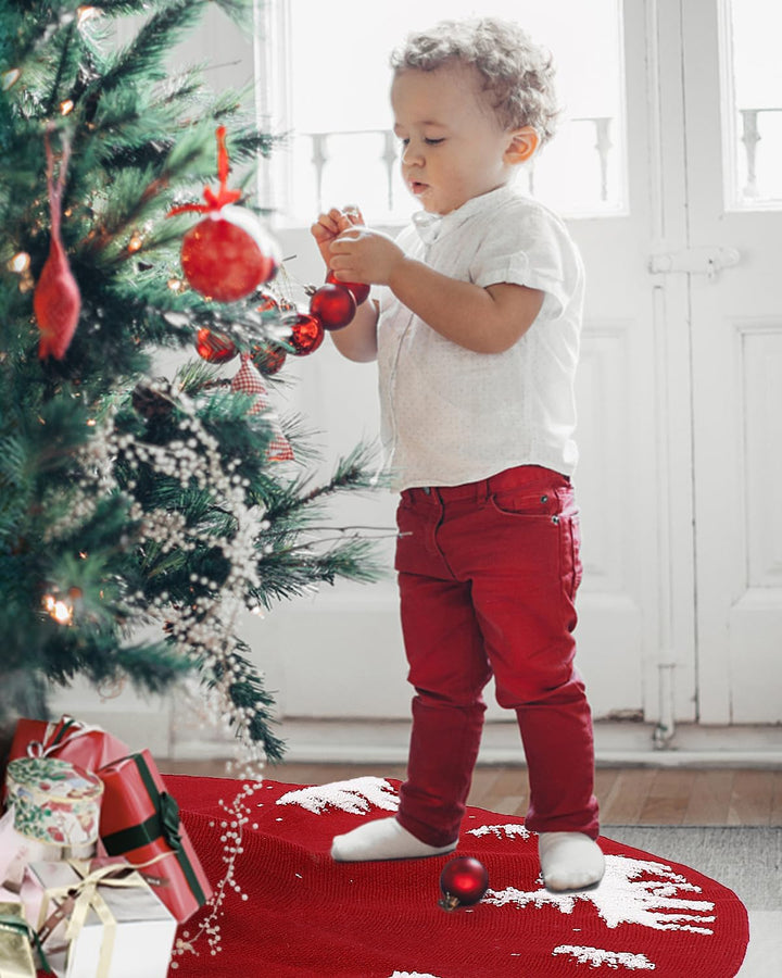 - Einfache Montage - Mit offenem Gurt-Design, drei Knoten sind fest an den Rand des Baumes Rock genäht, geeignet für jede Grösse von Weihnachtsbaum, ein Ort für Kinder zu spielen.