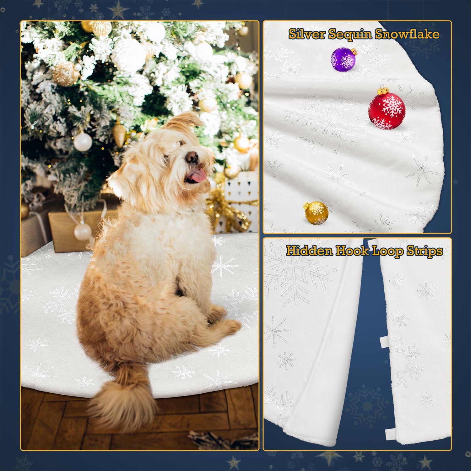 - Silber-Schneeflocken-Design: Das Schneeflocken-Muster ist ein lustiges und familienfreundliches Design, das Kindern und Freunden gefallen wird. Das paillettenbesetzte Weihnachtsbaumkleid ist das perfekte Accessoire zur Weihnachtsdekoration.