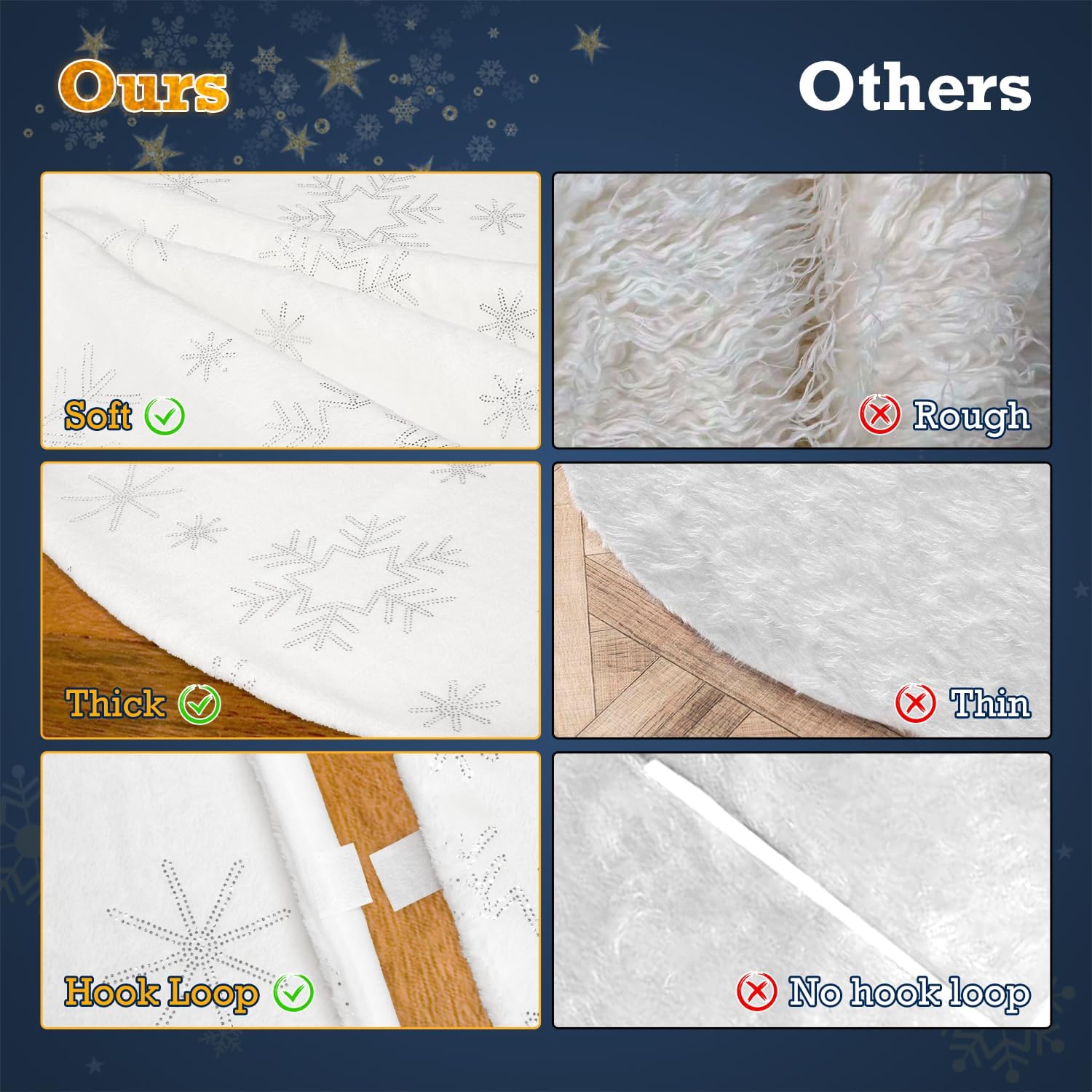 - Premium Qualität Tannenbaumdecke: Dieser Weihnachtsbaum-Plüschrock aus Doppelgewebe, Premium-Plüsch, weich, warm und bequem, gut verarbeitete Kanten. Wie eine Wolke aus frischgefallenem Schnee. Dieser Baumschmuck wird der Lieblingsplatz von Kindern
