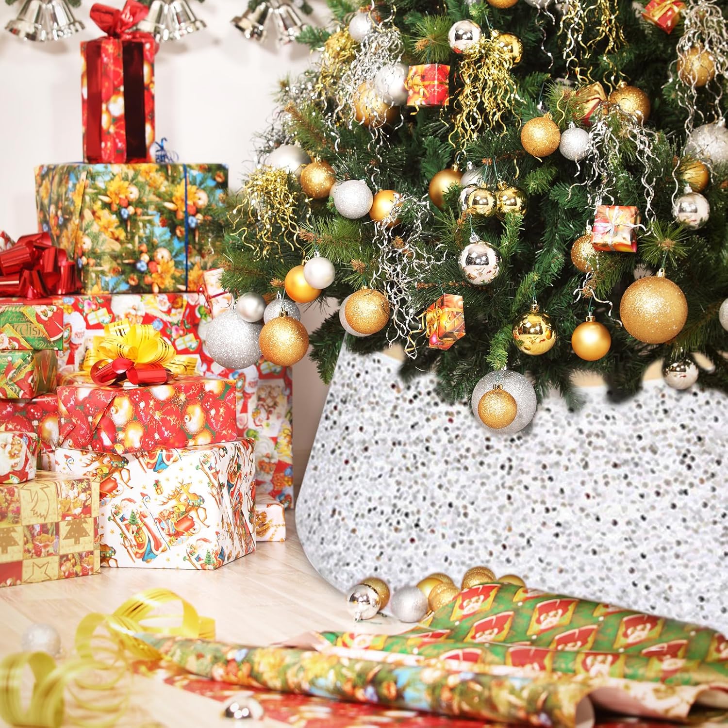 • ✨【Premium-Material Pailletten-Baumhalsbänder】: Unser Weihnachtsbaumrock besteht aus hochwertigem Vliesstoff und glitzernden Pailletten und verleiht ihm einen glamourösen und festlichen Look. Der Rock ist für zusätzliche Haltbarkeit mit stabilem