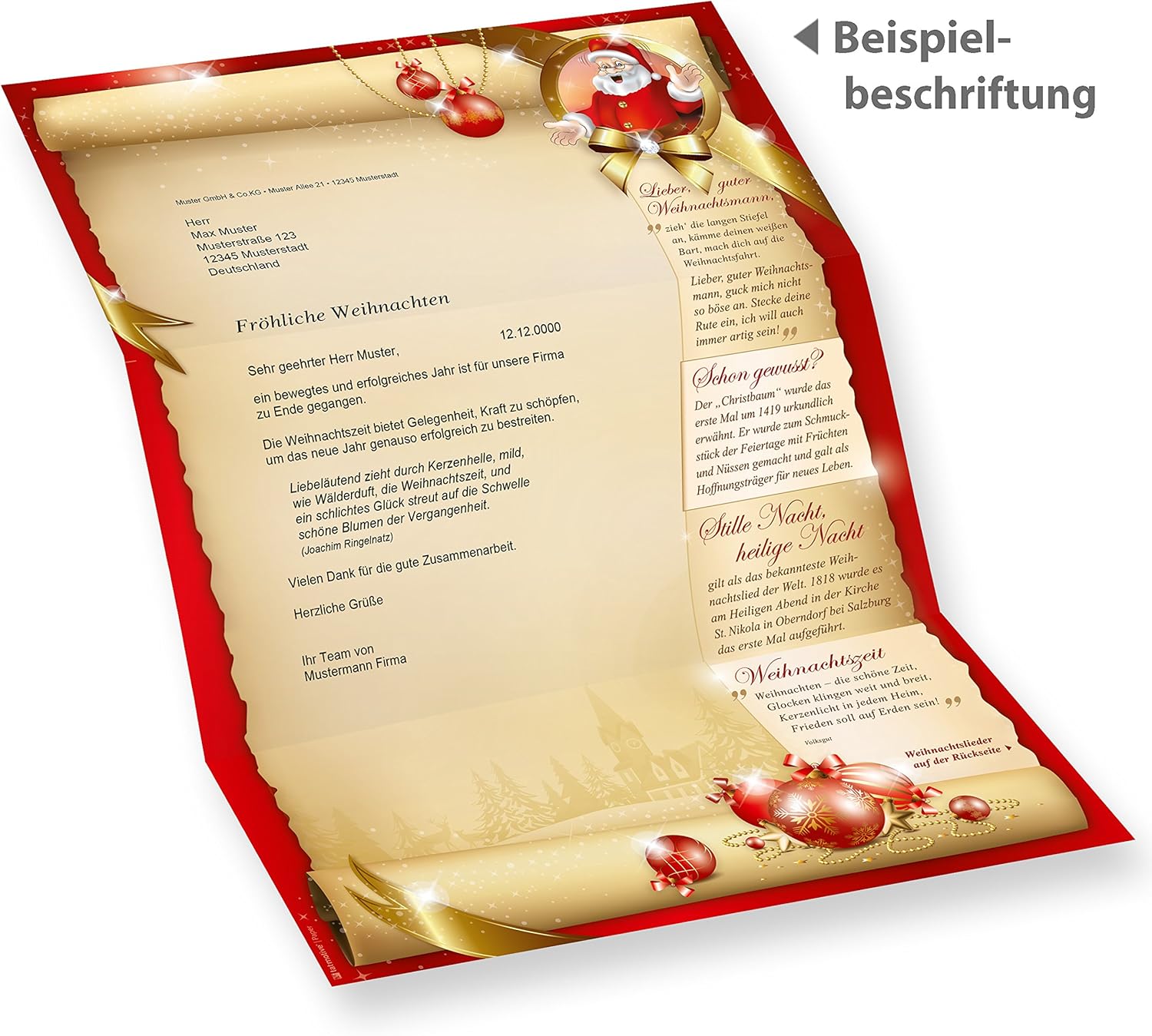 - 100 Blatt Briefbogen und 100 Briefumschläge (ohne Fenster) beidseitg, Rückseite mit Weihnachtslieder