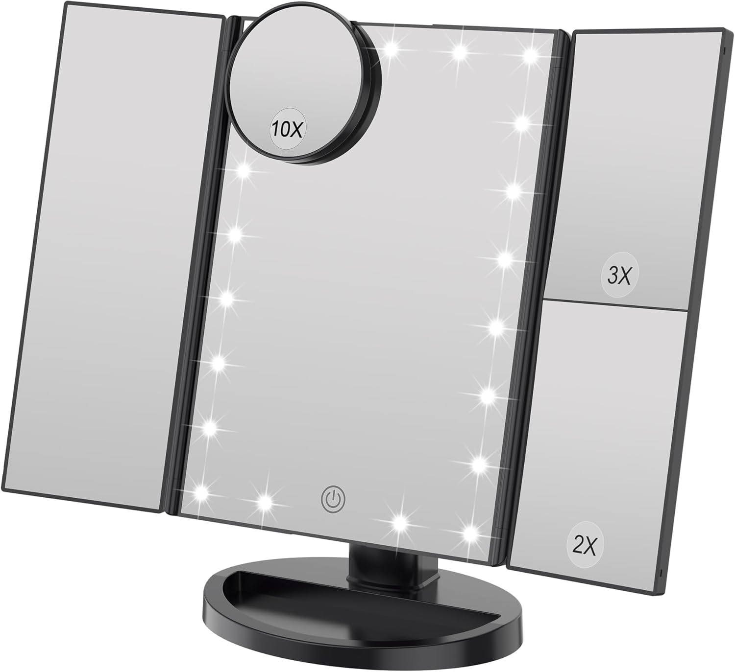• Klassisches dreifach gefaltetes Kosmetikspiegel-Design, 180-Grad-Drehung, vollständig an jede Position anpassbar, bietet Ihnen einen komfortablen Betrachtungswinkel.