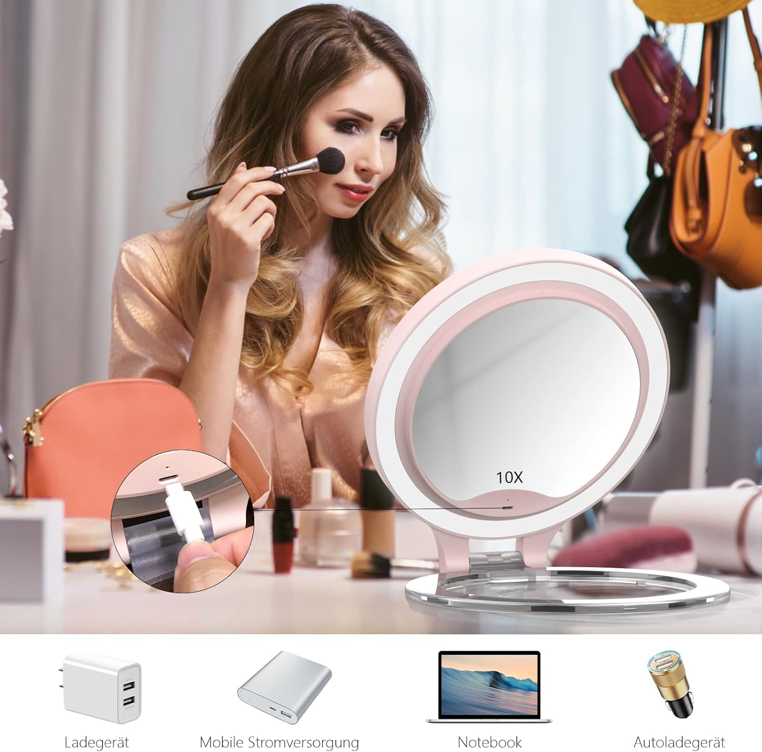 - 【10X/1X Vergrösserung 】Der kosmetikspiegel mit vergrösserung besteht aus normaler (1X) und vergrösserung (10X). 1 x für das tägliche Make-up und die reinigung, was Ihnen den vollen gesichtseffekt zeigt, und die vergrösserung 10 x ist perfekt