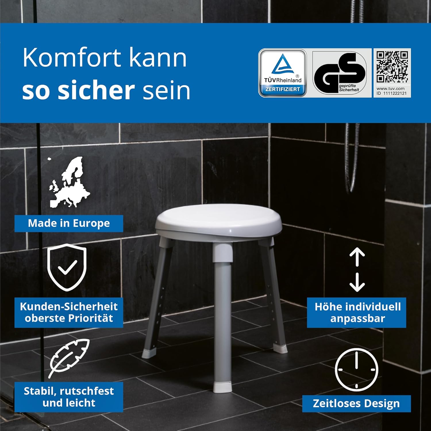 - 360° DREHFUNKTION: Frei drehbare Sitzfläche für leichtes Erreichen aller Richtungen und selbständige Körperpflege im Sitzen