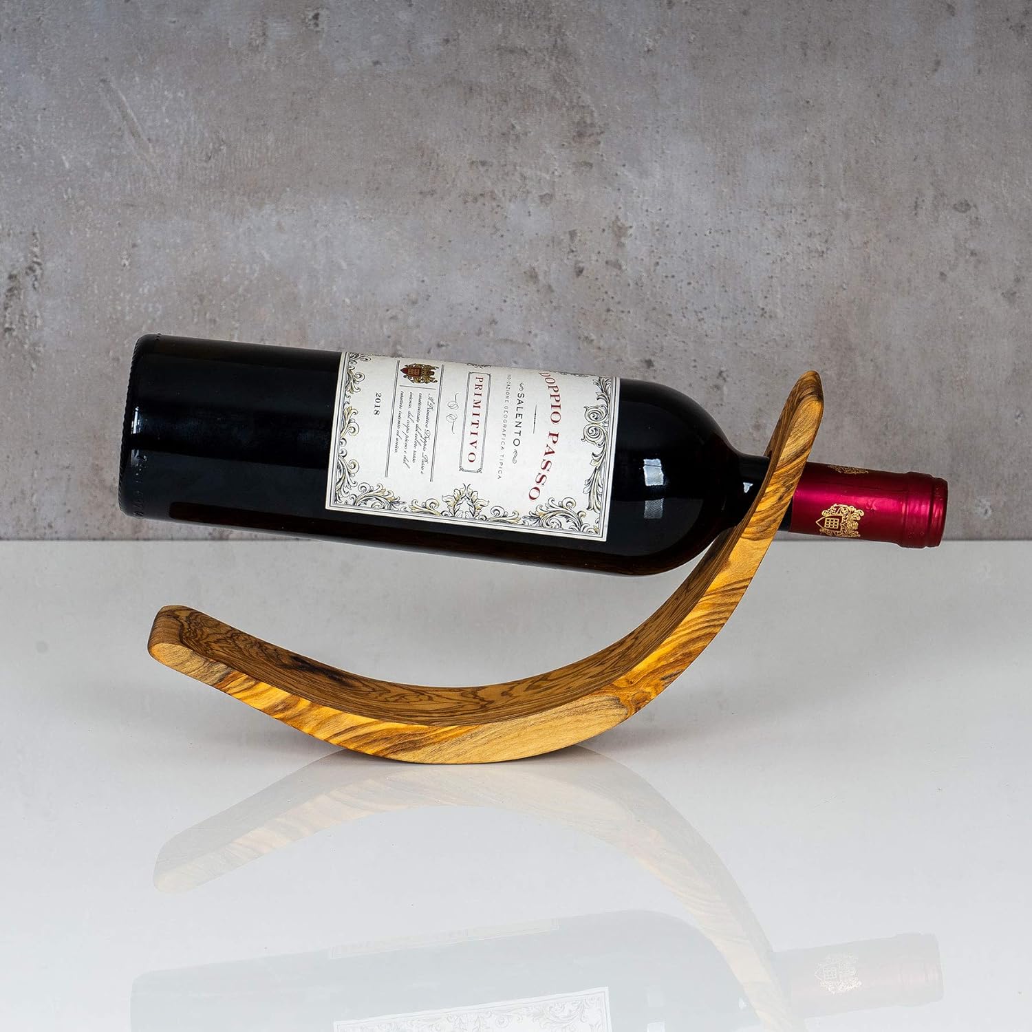 • Weinflaschenhalter aus widerstandsfähigem Olivenholz mit einer Grösse von BxHxT: ca. 6 x 28 x 1 cm