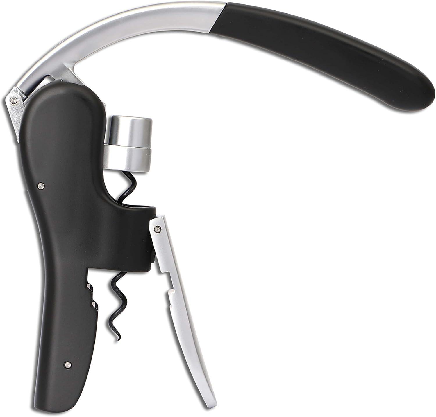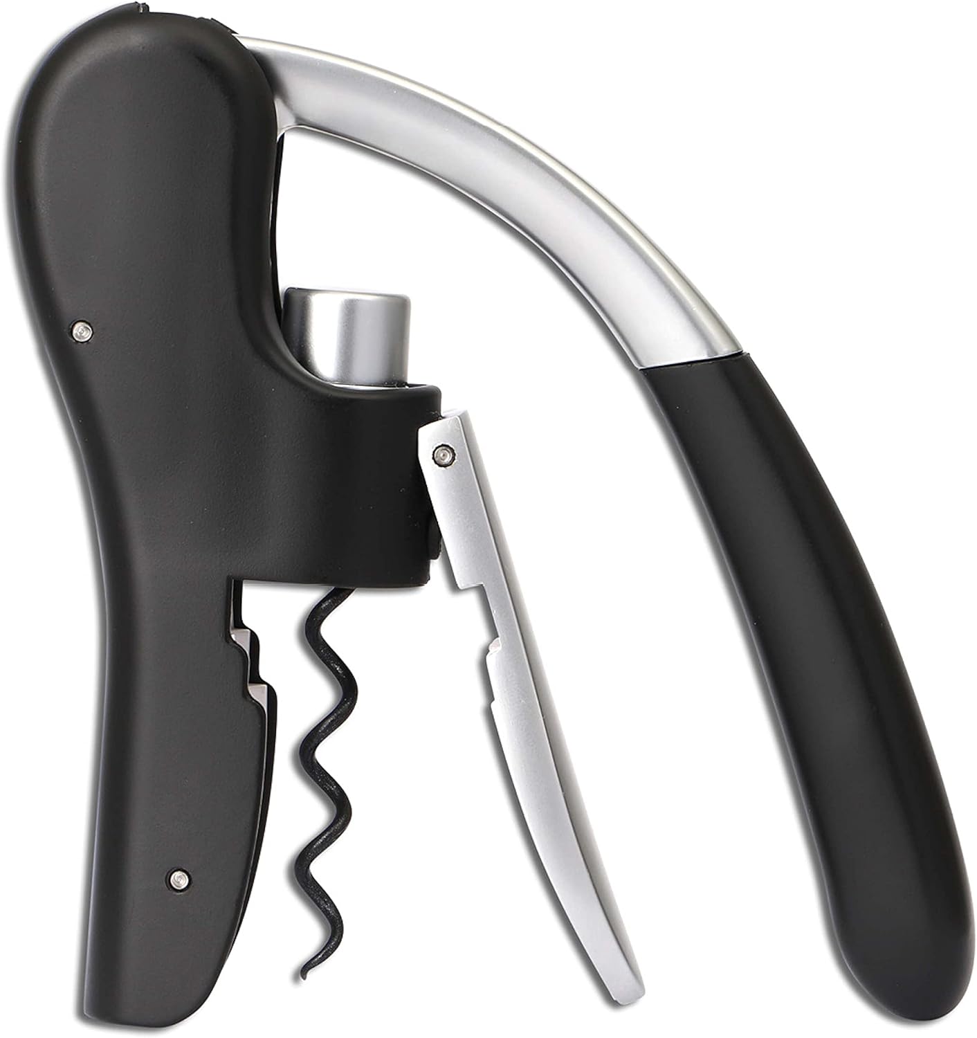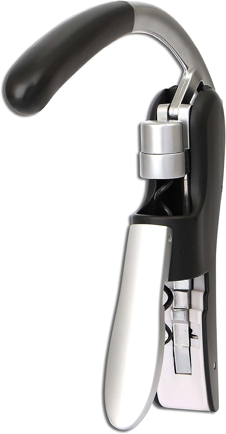 PRODUKTBESCHREIBUNGEN Weis 16849 Hebelkorkenzieher Korkenzieher effektiver Mechanismus für eine komfortable Anwendung funktioniert einfach und schnell auch bei minimalem Kraftaufwand ergonomisches und formschönes Design geeignet für Links- und Rechtshänder Anwendung Korkenzieher auf Flasche setzen, Handgriff zum Stabilisieren andrücken, Hebel herunterdrücken und hochziehen Masse ca. 12x14,5cm, Höhe ca. 3cm Gewicht ca. 340g Material Zinkdrukguss und Kunststoff (ABS)