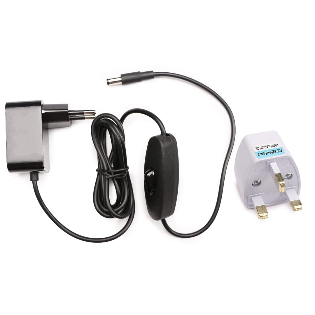 - Netzkabel mit 2-poliger europäischer Stecker und Adapter für UK 3-polige Buchse